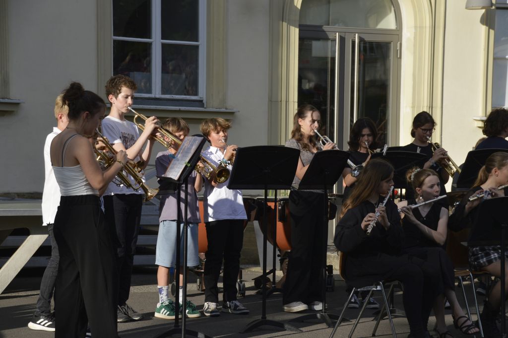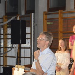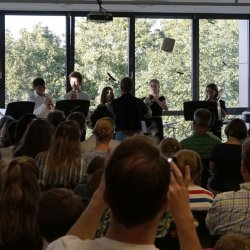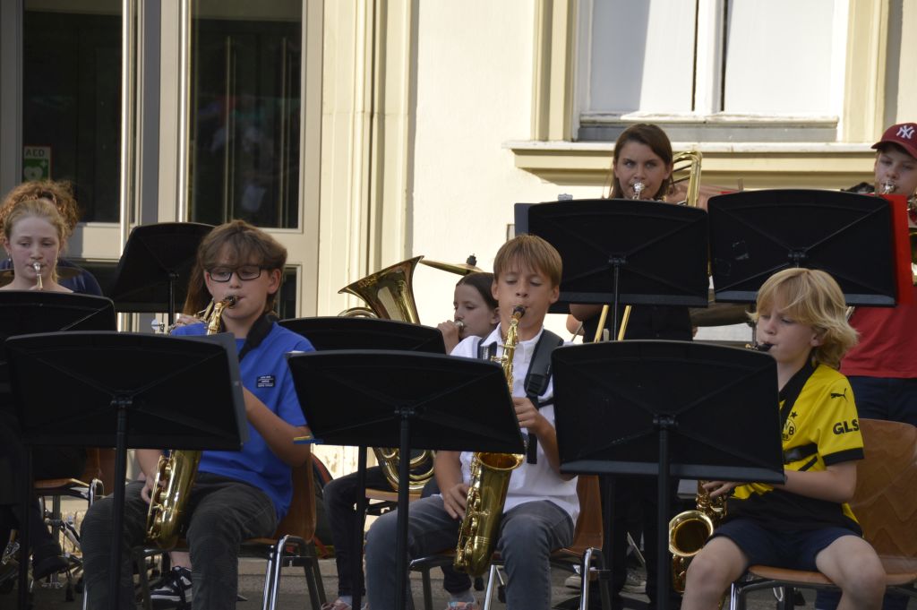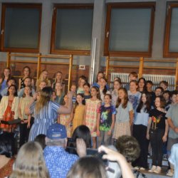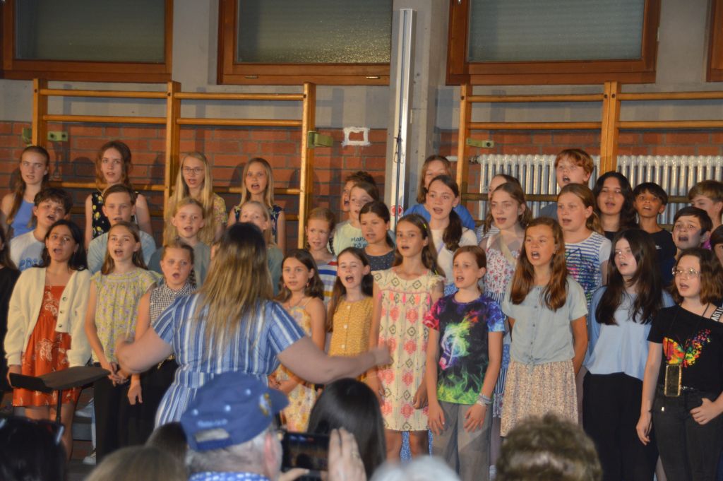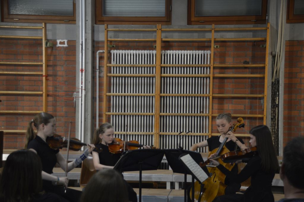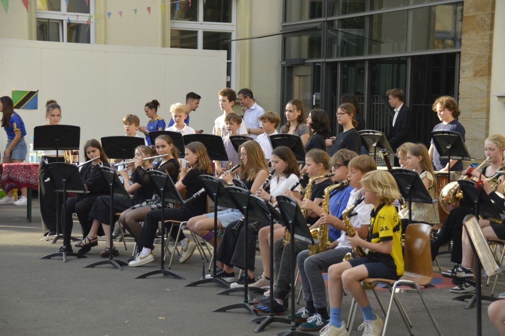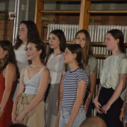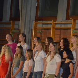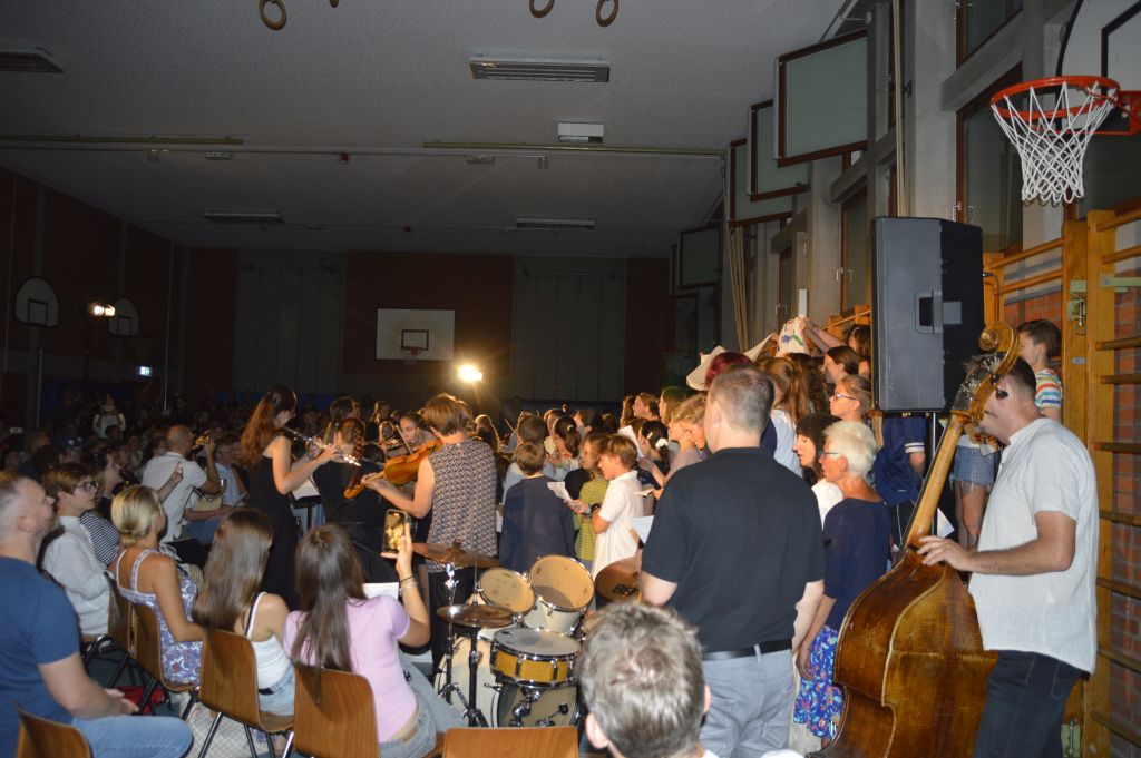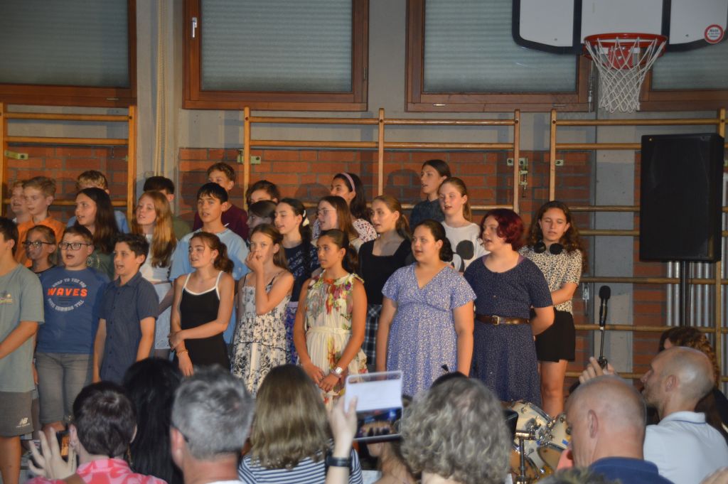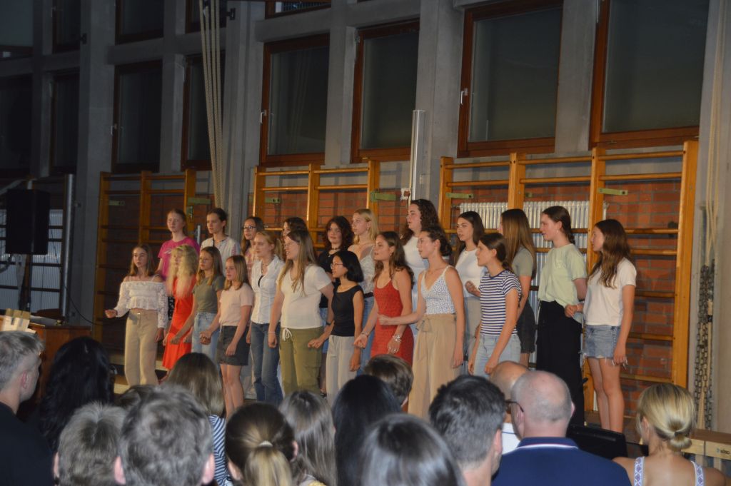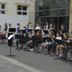 Bereits seit vielen Jahren ist das Wandelkonzert am E.T.A.-Hoffmann-Gymnasium in der vorletzten Woche des Schuljahres Tradition. Wieder einmal hatte die Fachschaft Musik ein fulminantes Mammut-Programm aus den zahlreichen und vielfältigen Beiträgen, die die Instrumentallehrkräfte sowie Leiter und Leiterinnen von Chören, Orchestern und Ensembles in Zusammenarbeit mit den Schülern und Schülerinnen erarbeitet haben, auf die Beine gestellt. Zwischen 20minütigen Blocks konnten die Besucher und Besucherinnen von Raum zu Raum lustwandeln, um die musikalischen Kostbarkeiten, exzellent von spielfreudigen Schülern und Schülerinnen aller Altersgruppen musiziert, zu erleben. Den Auftakt bildete bei schönem Wetter Klaus Wangorsch mit seinem „Wangorchester“ im Schulhof mit Hits aus Film-und Popmusik, bevor Musizierende und Gäste sich auf den Weg zu den einzelnen Spielstätten (Untere Turnhalle, beide Musiksäle, Mensa und Kapelle) machten. Die vollbesetzten Räume zeigten das große Interesse der Zuhörerschaft an den musikalischen Darbietungen, die von Kompositionen für Streicher über Holzbläser, Blechbläser, Gitarren, Percussion bis hin zu Klavier reichten, sowohl solistisch als auch im Ensemble gekonnt interpretiert. Auch Gesang erfreute das Publikum, sei es als Solo- oder Chorlied, mitreißend vorgetragen. Eine Kostprobe ihrer Virtuosität boten Bundespreisträger Jugend Musiziert. Am Ende des Abends ehrten die Chöre der Unter-und Mittelstufe, Orchester und Wangorchester und Kolleginnen und Kollegen unter der Leitung von Elisabeth Pagan Norbert Köhler, der sich nach 30 Jahren unermüdlichen Wirkens in den wohlverdienten Ruhestand verabschiedet, mit dem leidenschaftlich gesungenen ABBA-Song „Thank you for the music“. Darauf folgte tosender Applaus. Norbert Köhler bedankte sich sichtlich bewegt für das „beste Geschenk“, das man ihm habe machen können.