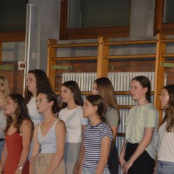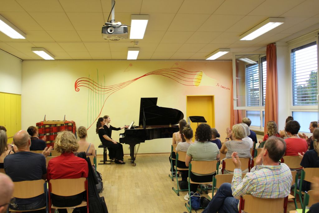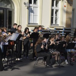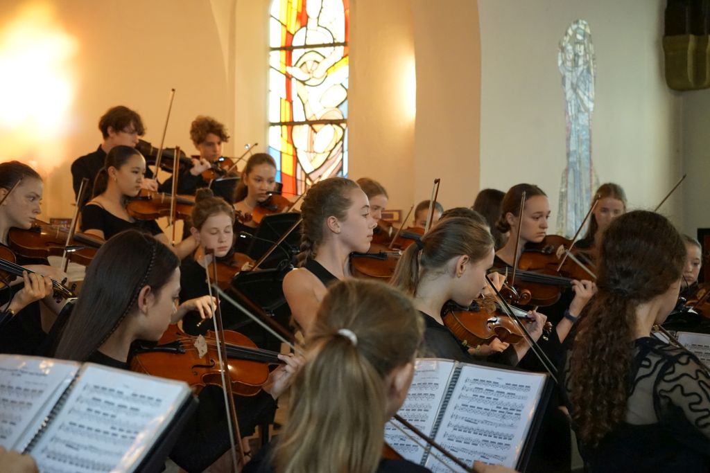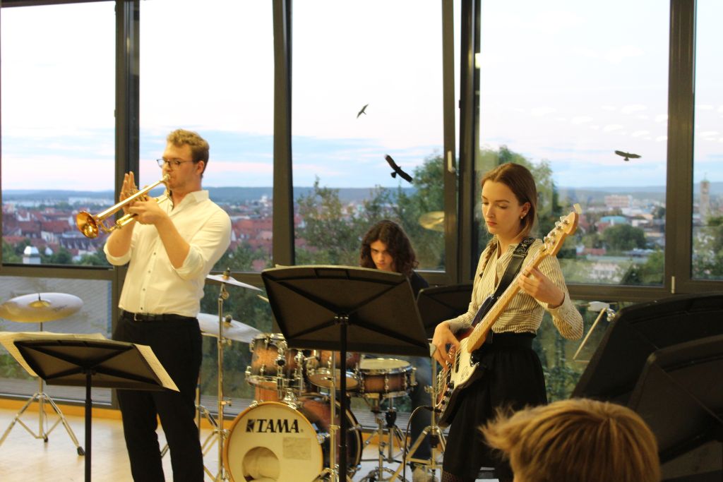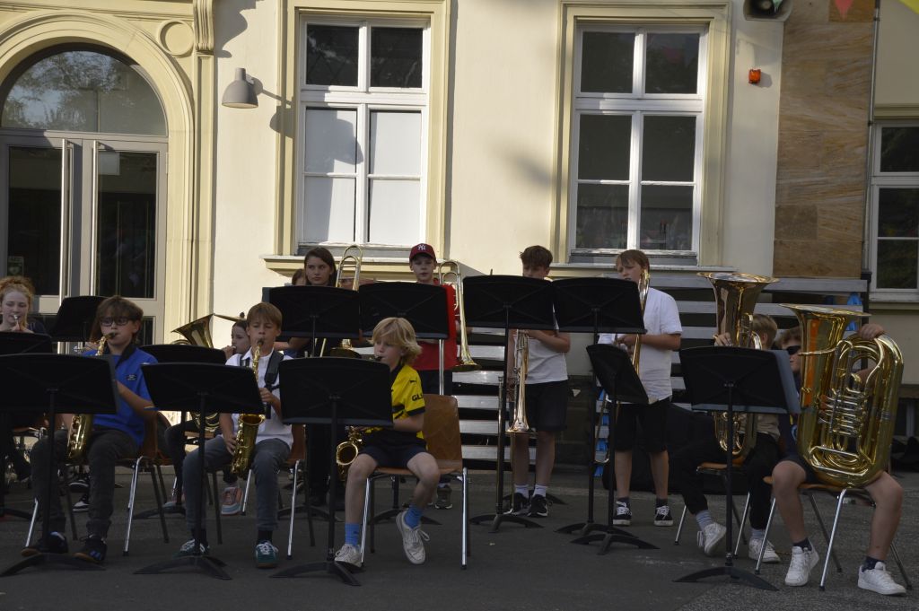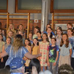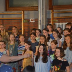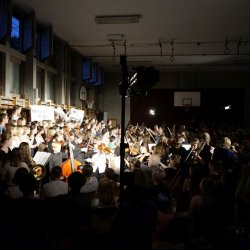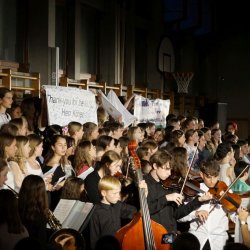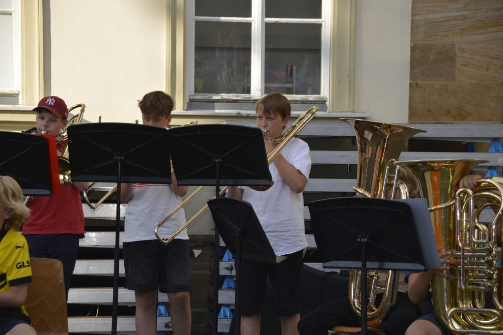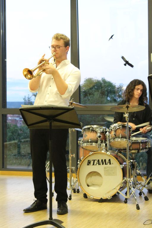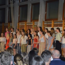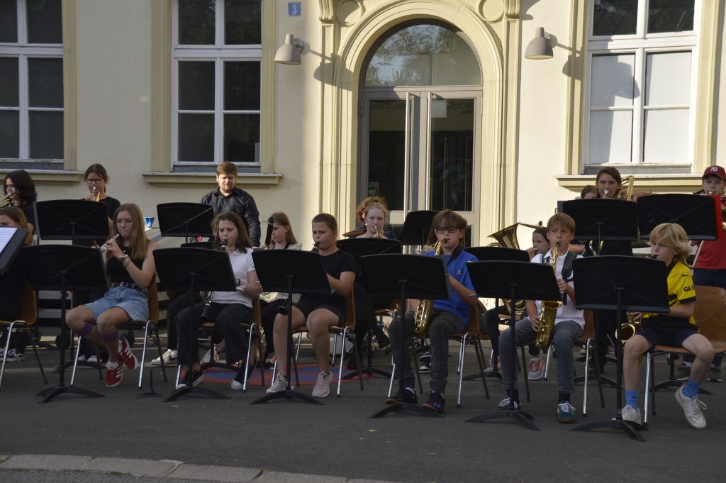 Bereits seit vielen Jahren ist das Wandelkonzert am E.T.A.-Hoffmann-Gymnasium in der vorletzten Woche des Schuljahres Tradition. Wieder einmal hatte die Fachschaft Musik ein fulminantes Mammut-Programm aus den zahlreichen und vielfältigen Beiträgen, die die Instrumentallehrkräfte sowie Leiter und Leiterinnen von Chören, Orchestern und Ensembles in Zusammenarbeit mit den Schülern und Schülerinnen erarbeitet haben, auf die Beine gestellt. Zwischen 20minütigen Blocks konnten die Besucher und Besucherinnen von Raum zu Raum lustwandeln, um die musikalischen Kostbarkeiten, exzellent von spielfreudigen Schülern und Schülerinnen aller Altersgruppen musiziert, zu erleben. Den Auftakt bildete bei schönem Wetter Klaus Wangorsch mit seinem „Wangorchester“ im Schulhof mit Hits aus Film-und Popmusik, bevor Musizierende und Gäste sich auf den Weg zu den einzelnen Spielstätten (Untere Turnhalle, beide Musiksäle, Mensa und Kapelle) machten. Die vollbesetzten Räume zeigten das große Interesse der Zuhörerschaft an den musikalischen Darbietungen, die von Kompositionen für Streicher über Holzbläser, Blechbläser, Gitarren, Percussion bis hin zu Klavier reichten, sowohl solistisch als auch im Ensemble gekonnt interpretiert. Auch Gesang erfreute das Publikum, sei es als Solo- oder Chorlied, mitreißend vorgetragen. Eine Kostprobe ihrer Virtuosität boten Bundespreisträger Jugend Musiziert. Am Ende des Abends ehrten die Chöre der Unter-und Mittelstufe, Orchester und Wangorchester und Kolleginnen und Kollegen unter der Leitung von Elisabeth Pagan Norbert Köhler, der sich nach 30 Jahren unermüdlichen Wirkens in den wohlverdienten Ruhestand verabschiedet, mit dem leidenschaftlich gesungenen ABBA-Song „Thank you for the music“. Darauf folgte tosender Applaus. Norbert Köhler bedankte sich sichtlich bewegt für das „beste Geschenk“, das man ihm habe machen können.