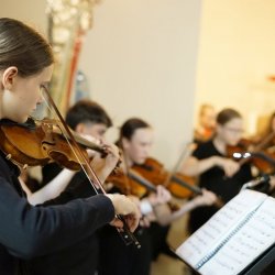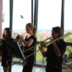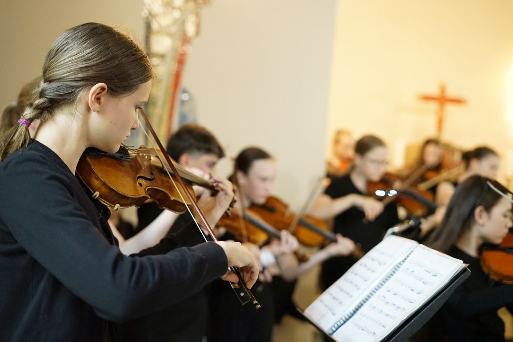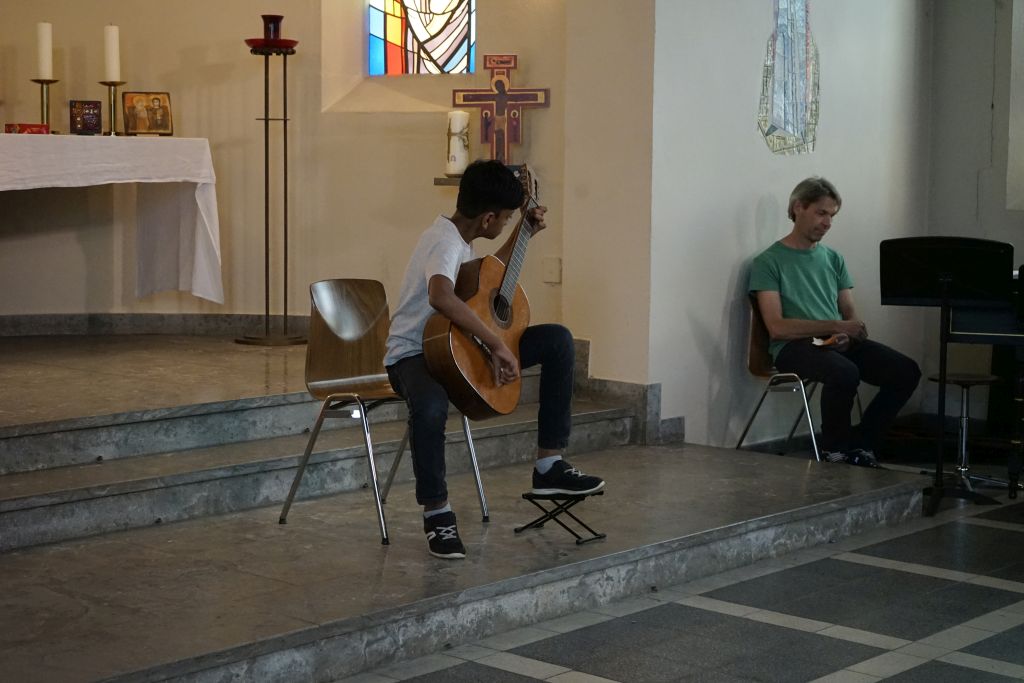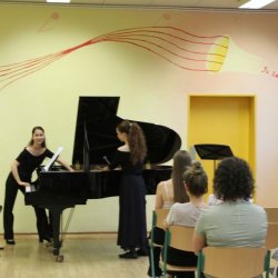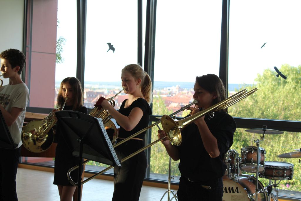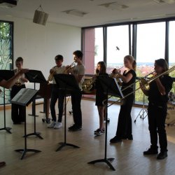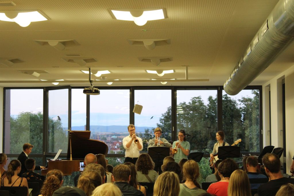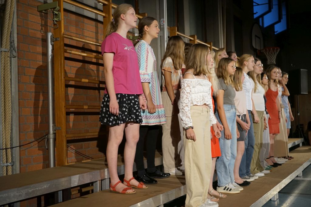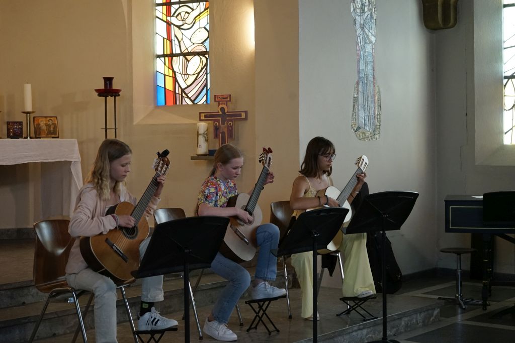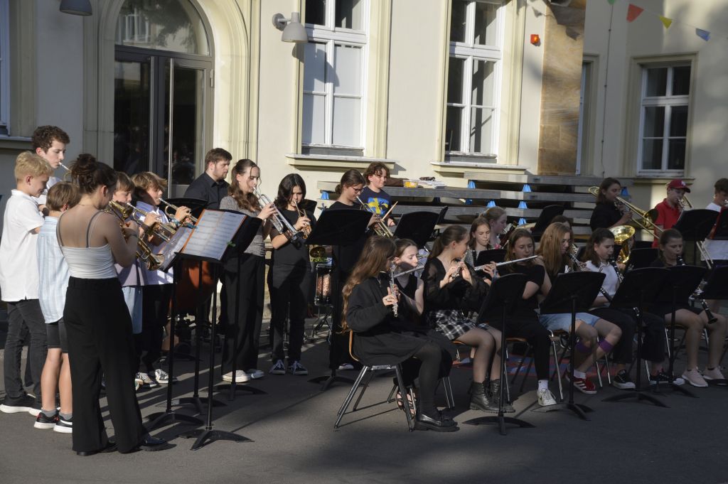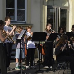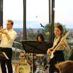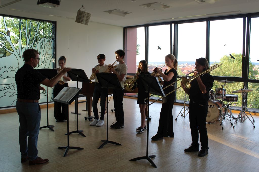 Bereits seit vielen Jahren ist das Wandelkonzert am E.T.A.-Hoffmann-Gymnasium in der vorletzten Woche des Schuljahres Tradition. Wieder einmal hatte die Fachschaft Musik ein fulminantes Mammut-Programm aus den zahlreichen und vielfältigen Beiträgen, die die Instrumentallehrkräfte sowie Leiter und Leiterinnen von Chören, Orchestern und Ensembles in Zusammenarbeit mit den Schülern und Schülerinnen erarbeitet haben, auf die Beine gestellt. Zwischen 20minütigen Blocks konnten die Besucher und Besucherinnen von Raum zu Raum lustwandeln, um die musikalischen Kostbarkeiten, exzellent von spielfreudigen Schülern und Schülerinnen aller Altersgruppen musiziert, zu erleben. Den Auftakt bildete bei schönem Wetter Klaus Wangorsch mit seinem „Wangorchester“ im Schulhof mit Hits aus Film-und Popmusik, bevor Musizierende und Gäste sich auf den Weg zu den einzelnen Spielstätten (Untere Turnhalle, beide Musiksäle, Mensa und Kapelle) machten. Die vollbesetzten Räume zeigten das große Interesse der Zuhörerschaft an den musikalischen Darbietungen, die von Kompositionen für Streicher über Holzbläser, Blechbläser, Gitarren, Percussion bis hin zu Klavier reichten, sowohl solistisch als auch im Ensemble gekonnt interpretiert. Auch Gesang erfreute das Publikum, sei es als Solo- oder Chorlied, mitreißend vorgetragen. Eine Kostprobe ihrer Virtuosität boten Bundespreisträger Jugend Musiziert. Am Ende des Abends ehrten die Chöre der Unter-und Mittelstufe, Orchester und Wangorchester und Kolleginnen und Kollegen unter der Leitung von Elisabeth Pagan Norbert Köhler, der sich nach 30 Jahren unermüdlichen Wirkens in den wohlverdienten Ruhestand verabschiedet, mit dem leidenschaftlich gesungenen ABBA-Song „Thank you for the music“. Darauf folgte tosender Applaus. Norbert Köhler bedankte sich sichtlich bewegt für das „beste Geschenk“, das man ihm habe machen können.