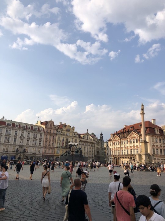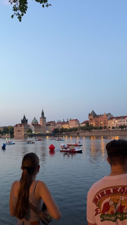 Bei einer Stadtführung werden wir an schönen Häusern vorbei und durch verwinkelte Gassen - die die Prager selbst allerdings als hässlich finden - geführt. Zum Apostelspiel müssen wir rechtzeitig am Wenzelsplatz sein. Wir wissen allerdings nicht, was das ist, bis wir den kleinen Figuren dabei zusehen, wie sie die Glocken der bekannten astronomischen Uhr läuten. Nach der Stadtführung werden wir alle in Kleingruppen auf Prag losgelassen, um uns überteuerten Starbucks zu kaufen und die Museen unsicher zu machen. Der Abend wird abgeschlossen mit einer Bolognese-Schlange durch die Metro, ab zu den Food Trucks und einem Klassentreffen auf der Insel.
