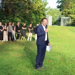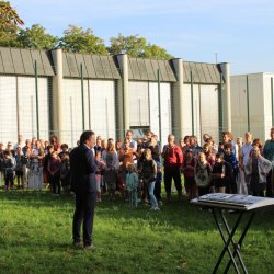 Bei strahlendem Sonnenschein konnte die Schulfamilie das neue Schuljahr beginnen. Nachdem sich die Aufregung der Klassen 6 - 11 um neue Klassenmitglieder und neue Räume etwas gelegt hatte, ging es für die neuen "Fünfis" auf dem Rasenplatz erst richtig los. Begrüßt wurden sie und ihre Eltern zunächst musikalisch vom Unterstufenchor mit dem Lied "Wir sind das E.T.A.!" sowie vom Saxophon-Quartett. Dann stellte sich der Schulleiter Markus Knebel vor und äußerte den Wunsch, die neuen Schülerinnen und Schüler mögen sich am E.T.A. wohlfühlen - und dazu würden alle in der Schulfamilie ihr Bestes geben. Auch der Elternbeiratsvorsitzede Dr. Grimm hieß die Neuen aufs Herzlichste Willkommen. Dann war es soweit: Der Stellvertretende Schulleiter Dr. Schlauch verlas die Namen der einzelnen Schülerinnen und Schüler der neuen 5. Klassen, die dann von ihren Klassleitungen und den Tutor/innen zu ihrem Klassenzimmer und dem ersten Tag am E.T.A. geführt wurden.