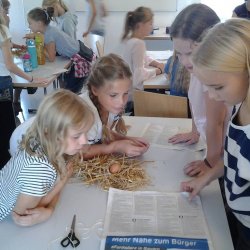Am Ende der ersten vollen Schulwoche brachen die vier 5.Klassen mit ihren jeweiligen Klassenleiterinnen zu den traditionellen Kennenlerntagen in das Jugendgästehaus am Kaulberg auf. Die Tutoren hatten allerlei Spiele vorbereitet, die die letzten Schwierigkeiten mit den vielen neuen Namen überwinden halfen und das Eis brachen. Außerdem wurden gemeinsam Eierrettungsmaschinen konstruiert und das beliebte Tauschspiel gespielt, bei dem die Schüler versuchen mussten, eine Tafelkreide aus dem E.T.A. möglichst gewinnbringend bei Passanten einzutauschen. Viel Freude machte den Teams auch die Foto-Challenge: Hierbei wurden bestimmte Aufgaben von den Teams fotografisch gelöst. Außerdem erstellten die Tutoren mit ihren Klassen Geburtstagskalender, Steckbriefe und bastelten Schmuck für die Klassenzimmer. Natürlich durften auch Klassiker wie der Bunte Abend und die Nachtwanderung nicht fehlen.