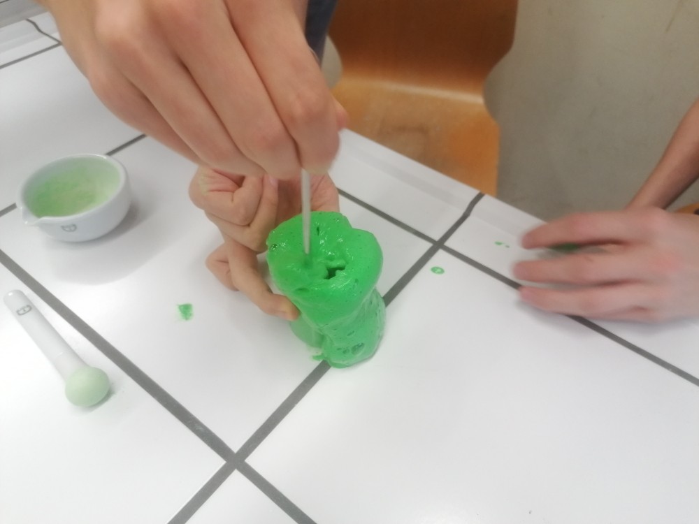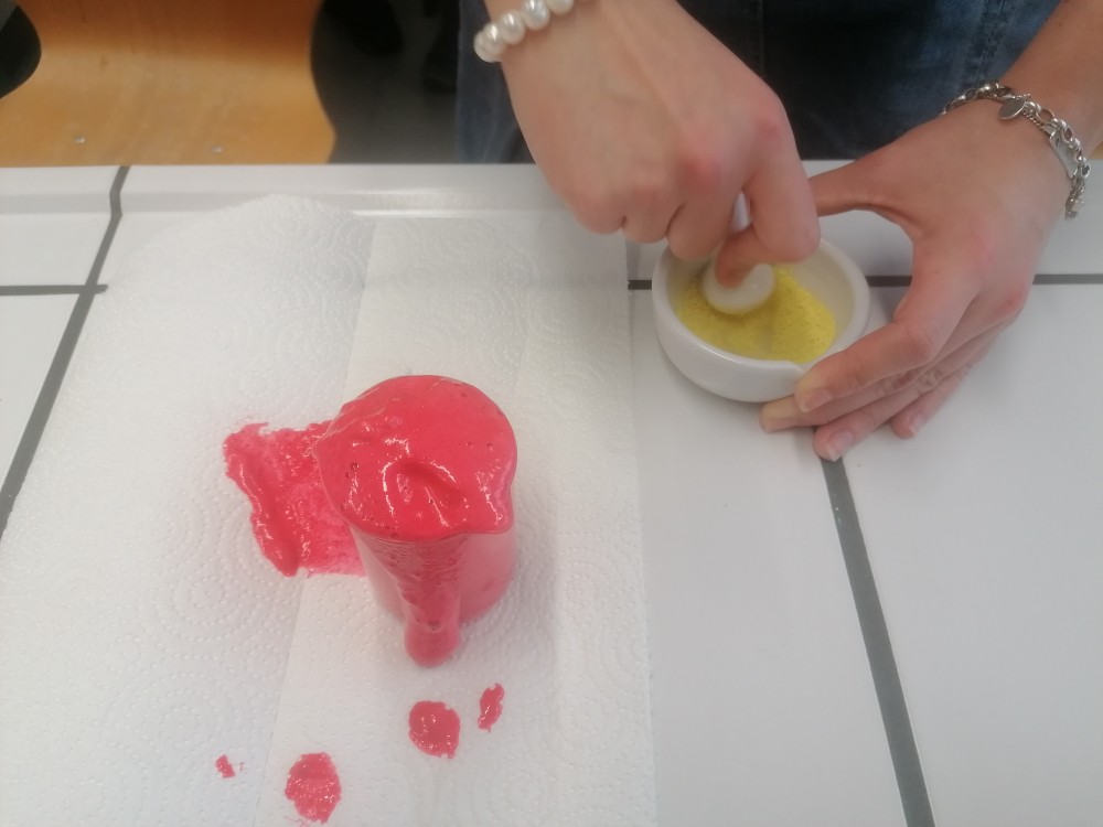 Es sind oft die kleinen Versuche, die besonders viel Spaß machen. Man braucht nur ein Stück Kreide, etwas Zitronensäure und ein wenig Spülmittel und schon entstehen Schaumgebilde in den verschiedensten Farben, die sich auch auf die verschiedensten Arten verwenden lassen. Da werden auch die ganz Großen wieder zu echten Spielkindern. Schön, wenn Chemie so viel Spaß macht!