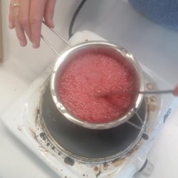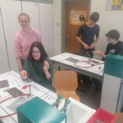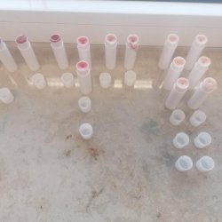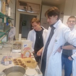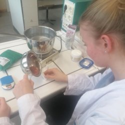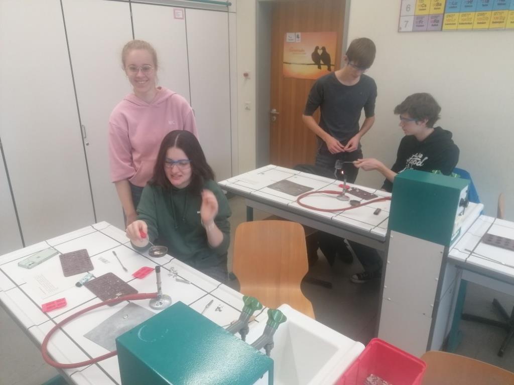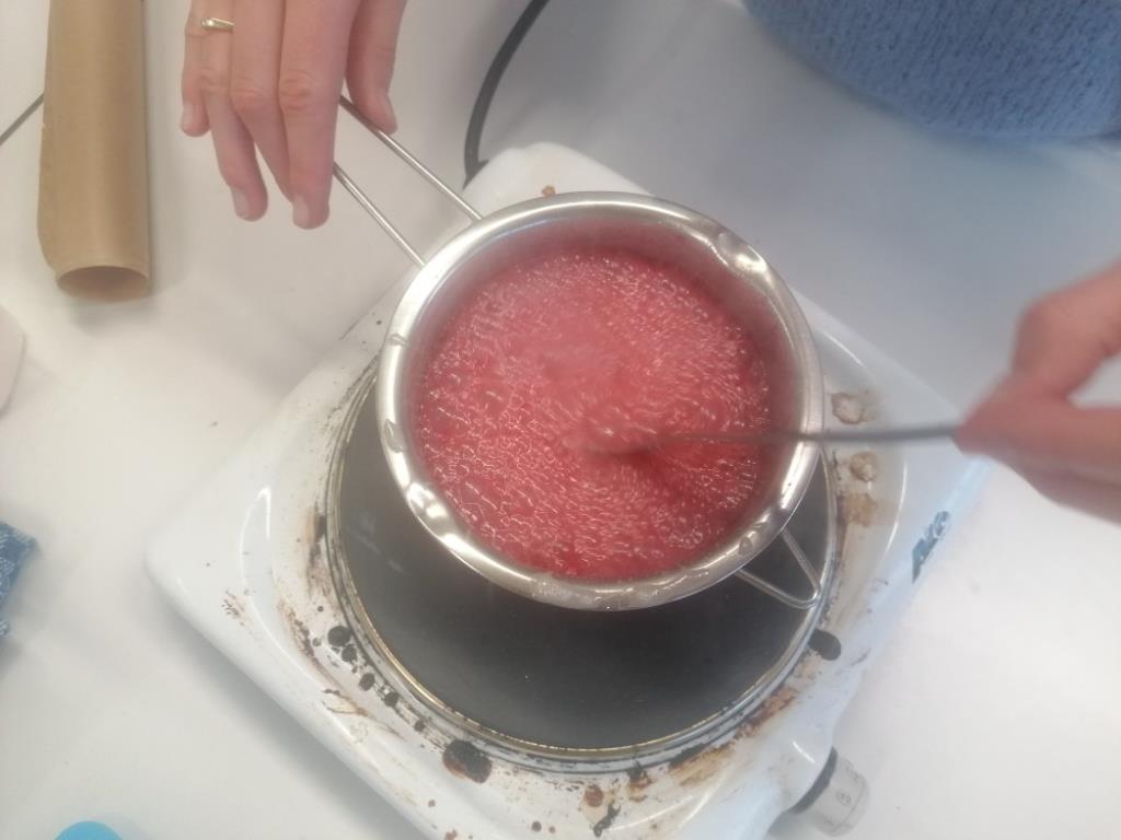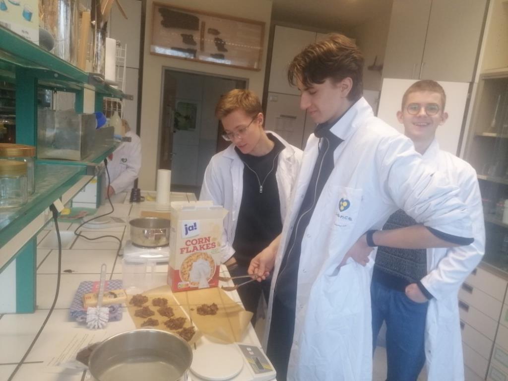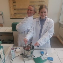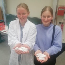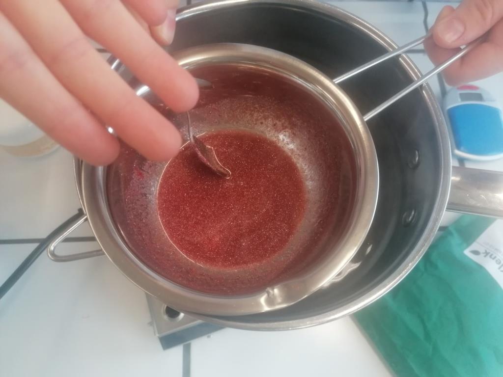 Von Schoko-Crossies bis zum Lippenstift (beides in verschiedenen Farbvarianten): Die Schülerinnen und Schüler des Wahlkurses Chemie zeigen sich kreativ. Ganz wichtig dabei: Glitzer!