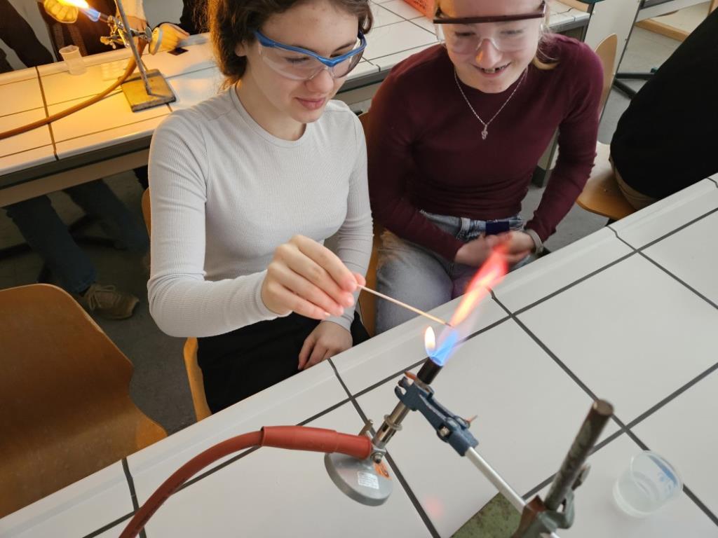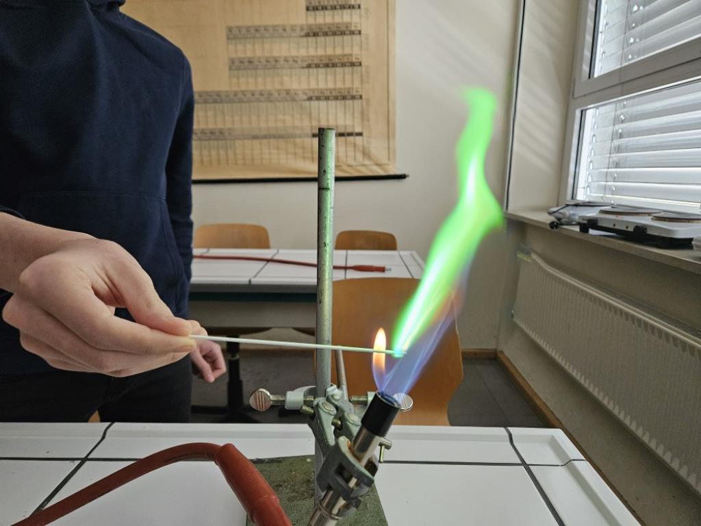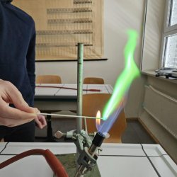 Es war ein bisschen wie beim Feuerwerk. Wenn man Salze in in die Flamme des Bunsenbrenners bringt, fängt diese an, in verschiedenen Farben zu leuchten. Schön, wenn Chemie auch einmal so farbenfroh sein kann.