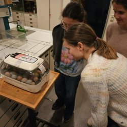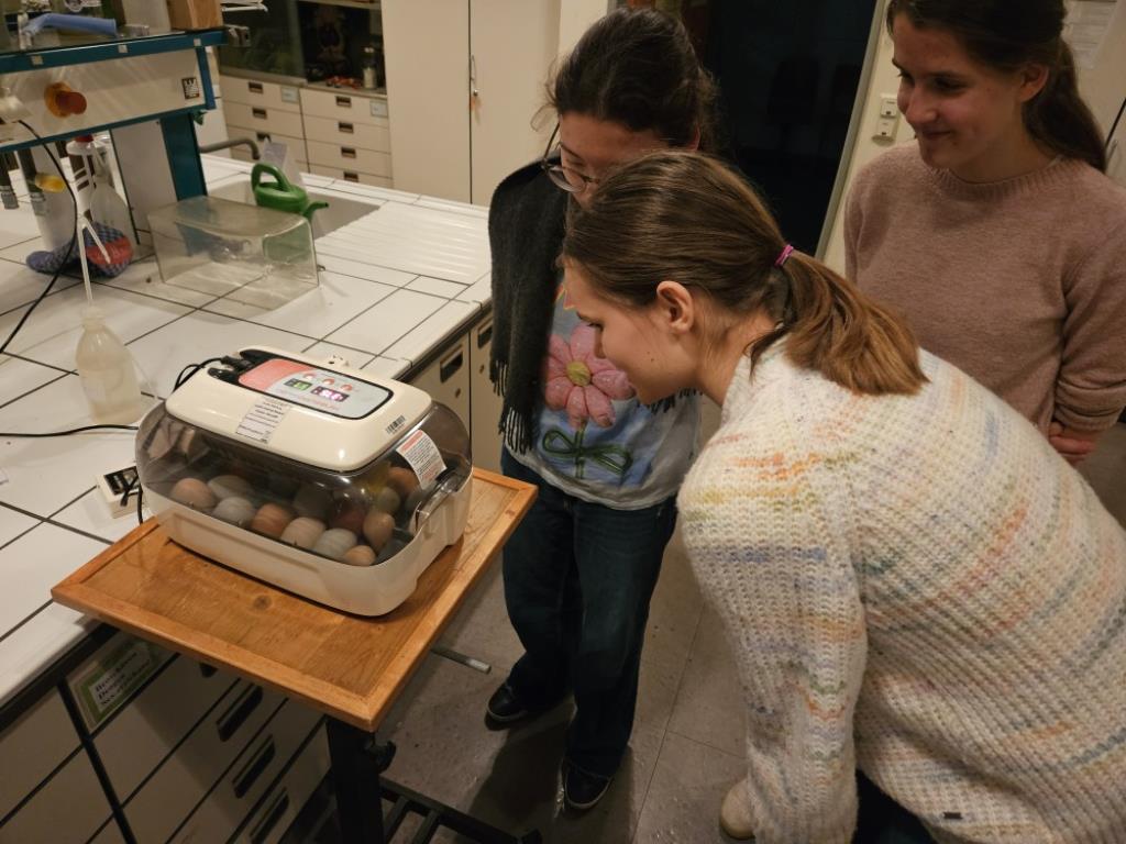 Drei Wochen zuvor waren 24 Hühnereier bei konstanter Temperatur und Luftfeuchtigkeit in einen Brutapparat gelegt worden, der die Eier nach dem Vorbild der Natur auch regelmäßig wendet und so eine optimale Entwicklung der Küken gewährleistet.