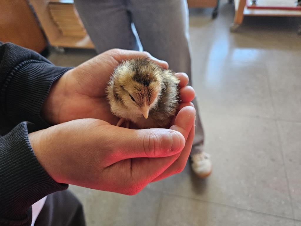 Am vergangenen Wochendende hatten Schüler*innen der Klasse 9d die Möglichekeit, während der Kükennacht einige zuckersüße frisch geschlüpfte Küken zu bestaunen und sogar bei einem Küken den Schlupf zu beobachten. Insgesamt sind 12 kleine Flauschbällchen geschlüpft.