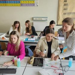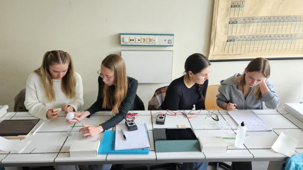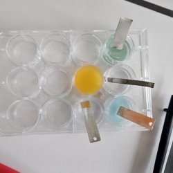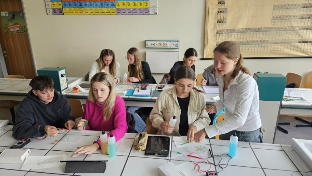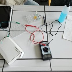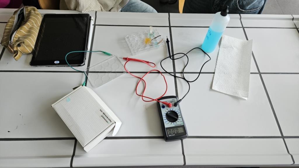 Der Chemiekurs der K12 misst Spannungen zwischen verschiedenen chemischen Kombinationen von Metallen. Solche Aufbauten werden (in technisch perfetionierter Form) im Alltag von uns allen in Form von Batterien und Akkus eingesetzt.