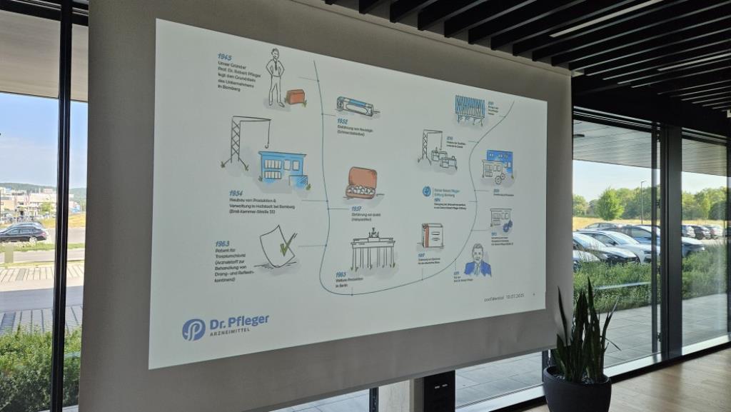 Am 10.07.25 hatte der Chemie-Wahlkurs der Jgst. 11 die Möglichkeit, einen Blick hinter die Kulissen der Firma Pfleger zu werfen. Pfleger ist ein großer Hersteller von Arzneimitteln, der in Bamberg seinen Sitz hat (https://.dr-.pfleger.de).