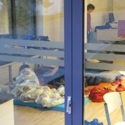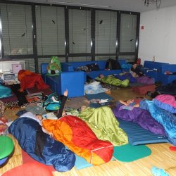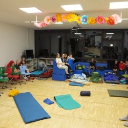 Noch ein Stückchen weitergeflogen ist dann die Klasse 6d, da sie sich nach diesem gelungenen Lese-Auftakt zudem am Abend auf ein gemeinsames Übernachtungsabenteuer in der Schule einließ, um in dunkler Nacht in Cornelia Funkes „Tintenherz“-Welt einzutauchen. Die Räumlichkeiten der OGS boten dabei nicht nur einen sehr bequemen Teppich, sondern auch genug Platz für 27 Schüler und drei Lehrkräfte die Nacht mit Vorlesen und Lesen zu verbringen. Um nicht zu viel zu verraten – auch nach der Nachtwanderung kehrten am nächsten Morgen alle Schüler – gestärkt durch ein gemeinsames Frühstück mit den Eltern – zurück in die Realität. Wir freuen uns auf den nächsten Flug…