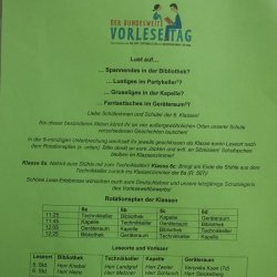 Vielen herzlichen Dank an dieser Stelle für die Flugbegleiter Veronika Kuen (Schulsiegerin des letztjährigen Vorlesewettbewerbs, Stadt- und Bezirkssiegerin), Frau Scholz, Herr Heinz, Herr Knebel, Herr Landgraf, Herr Metzner, Herr Schlauch, Herr Steckelberg und Herr Zweier sowie die Hauptorganisatorin Frau Grillmeier. Danke für diese besonderen Momente im Reich der Phantasie.