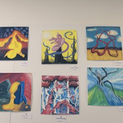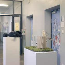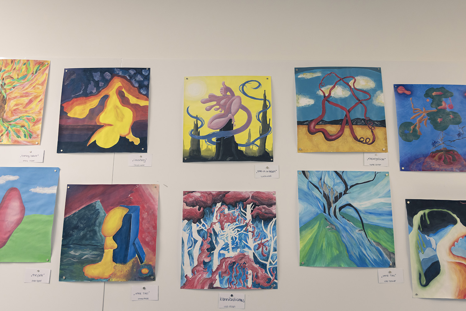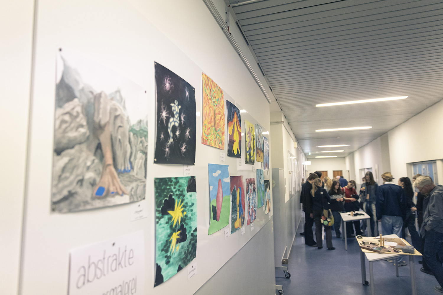 Nach vier Semestern Oberstufe, u.a. vielen zerrissenen Skizzenpapieren, jeder Menge Farbtuben, geschrotteten Pinseln, Kreiden, Bleistiften, Filzstiften , Klebebändern, Zeitungspapieren, Ton, Speichervolumen, Druckpapieren und vorallem Zeit, Nerven, Freude und Durchhaltevermögen, konnte die Kunst-Oberstufe des letzten Q12-Jahrgangs (hauptsächlich das Additum) nun endlich ihre künstlerischen Arbeiten der vergangenen zwei Jahre in einer gemeinsamen Ausstellung präsentieren!