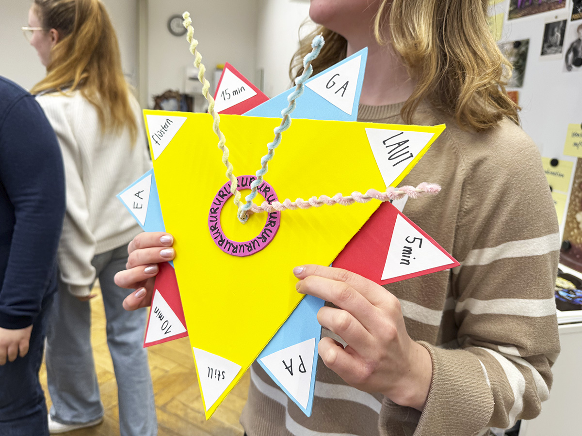 Jedes Jahr kurz vor Weihnachten besteht für Referendare sämtlicher Unterrichtsfächer zwei Tage lang im Rahmen einer Fortbildung die Möglichkeit, alternative, kreative Unterrichtsformen für ihre Unterrichtsfächer kennen zu lernen. Sie werden zusammengefasst unter "Szenisches Spiel". Es wird mit schaustellenden, akustischen, optischen und haptischen Bildträgern experimentiert und auch textbasiert Lösungen für kreativen und Schüler-aktivierenden Unterricht gesucht. Diese Annäherungen finden in verschiedenen Workshops von unterschiedlichen Fachschaften statt. Im Anschluss sollen sich die Referendare jeweils einer Gruppe/einem Unterrichtsfach zuordnen, um dort am zweiten Tag intensiver und für ein konkretes Praxisbeispiel für den eigenen Unterricht in Arbeitsgruppen zu arbeiten. In einer Endpräsentation zeigten die teilnehmenden Referendare auch dieses Mal wieder vielseitige Herangehesweisen, ungewöhnliche Denkansätze- und anstöße und machten dabei auch bewusst, wie viel Spaß sie bei der gemeinsamen, kreativen Auseinandersetzung hatten.