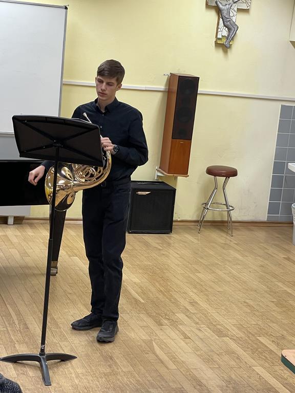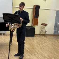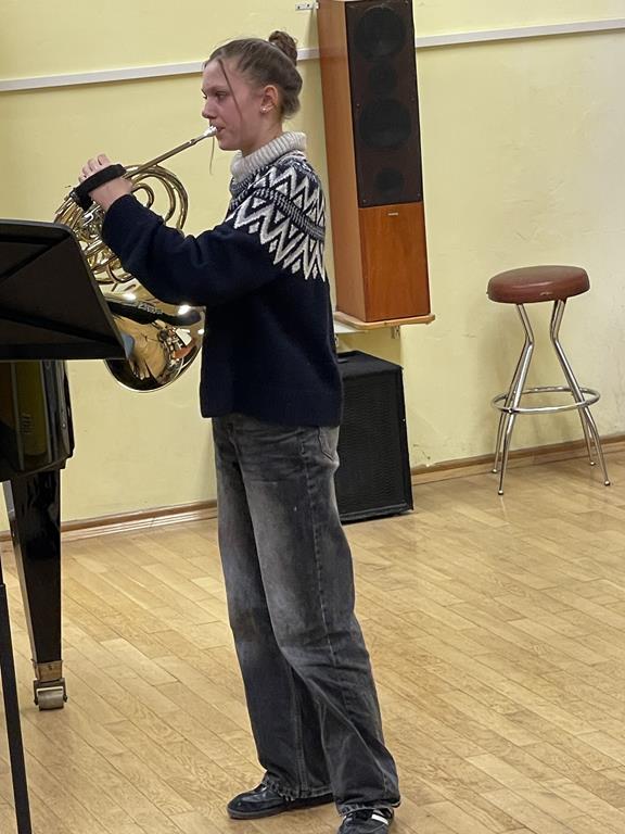 Beim zweiten Duo, Emilia Müller, Horn, und Lucia Bartoschek, Klavier, hätte man ähnliche Klangspektren erwarten können. Aber gerade junge Menschen entwickeln individuelle Tonvorstellungen und Spielfertigkeiten. So bestach die junge Hornistin bei C. Reineckes „Notturno“ op. 112 mit makelloser Intonation, langem Atem und vor allem durch mit Leichtigkeit gestalteten anspruchsvollen Höhen! Als ebenfalls starke Partnerin empfahl sich Lucia mit teils behutsamer Unterstützung, dann wieder musikalisch und rhythmisch führend und kommunizierte bei M. Horvits „Circus Suite“ dynamisch, technisch und musikalisch auf Augenhöhe.