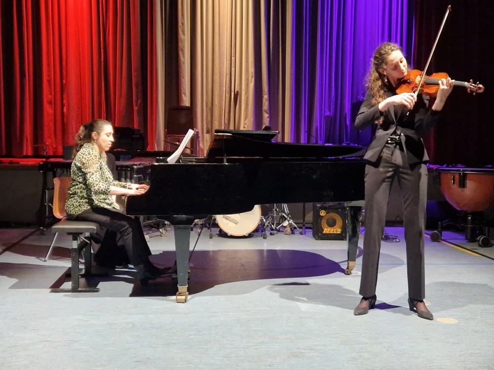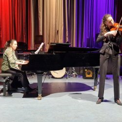Eine Kostprobe ihrer virtuosen Spielfähigkeit auf der Violine zeigte Sina Martens (11c) mit dem Scherzo „La ronde des Lutins“ von Antonio Bazzini (Klavierbegleitung: Burcin Sel-Mumcuoglu). Hierbei demonstrierte sie souverän eine große Bandbreite der spieltechnischen Möglichkeiten dieses Instrumentes.