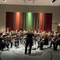 Mit sinfonischen Bläserklängen wurde der zweite Teil des Abends durch das Blasorchester (Leitung: Frank Werner) eingeläutet. „Choreography“ brachte einen Reigen epischer Melodien zu Gehör, die das Publikum in eine cineastische Gefühlswelt entführten. Dass das Blasorchester auch Pop-Musik kann, zeigte es mit einem Medley aus den Hits von Robbie Williams. Der Titel „Let me entertain you“ war hierbei Programm und es wurden selbst anspruchsvolle Tempowechsel mühelos gemeistert.