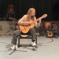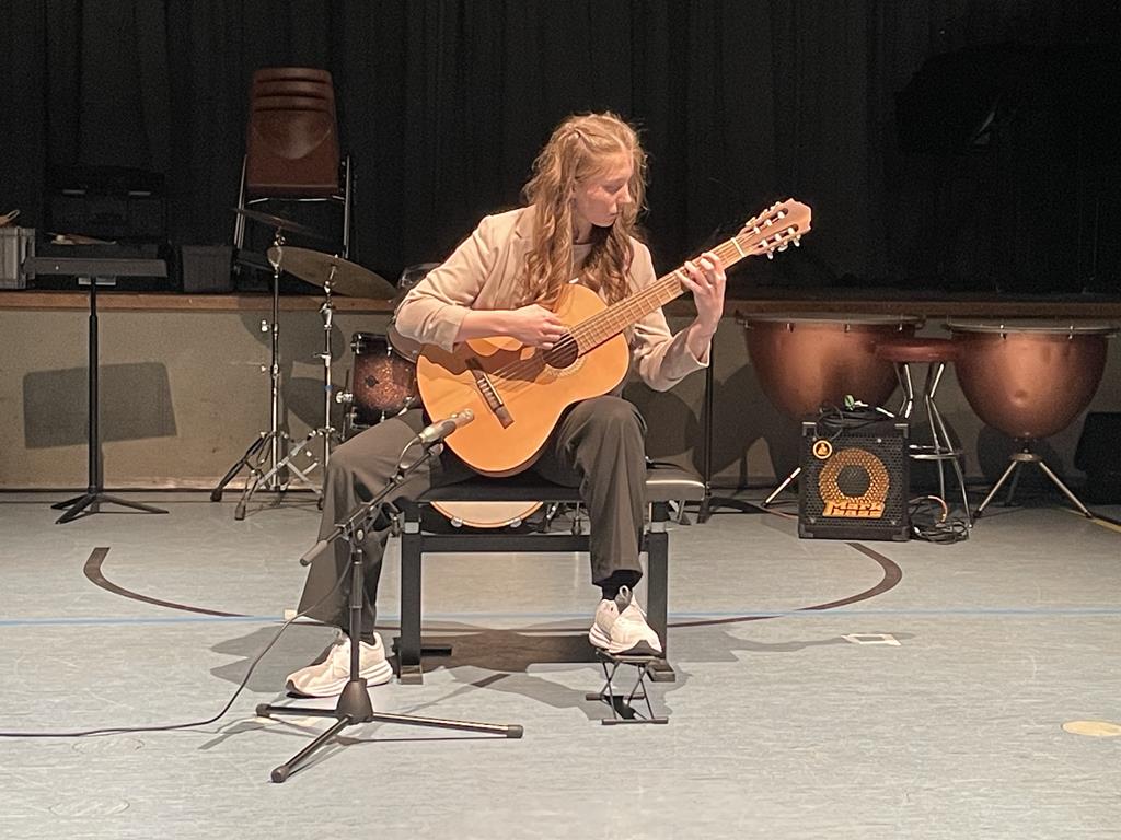 In dieses wohltuende Klangbad fügte sich das Gitarrensolo von Mariella Schumm (K12) wunderbar ein. Mit ihrer beschwingten Interpretation von „Mona Ray“ zeigte sie eine große Bandreite der klanglichen Facetten dieses Instrumentes.