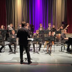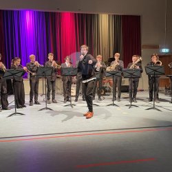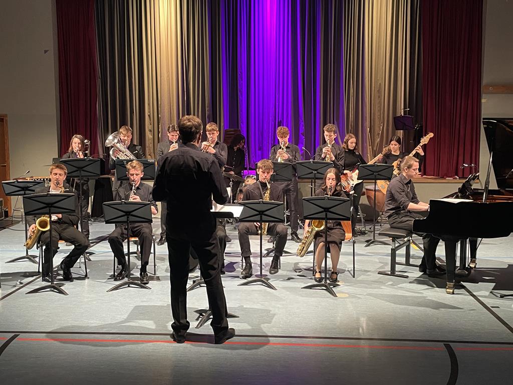 Klanglich und rhythmisch präzise aufeinander abgestimmt beendete die Big Band (Leitung: Johannes Klehr) den ersten Teil des Konzertes. Mit dem Klassiker „St. Thomas“ zeigte sich die Band als ein perfekt aufeinander eingespieltes Team. Sowohl der „C-Jam Blues“ als auch das abschließende „On Broadway“ ließen keine Wünsche offen: da wechselten die Soli durch die unterschiedlichen Instrumentengruppen und es wurde in jazztypischer „four and four“ Manier mit- und gegeneinander improvisiert.