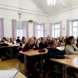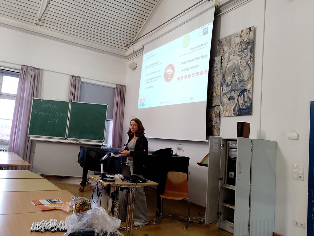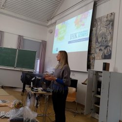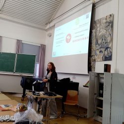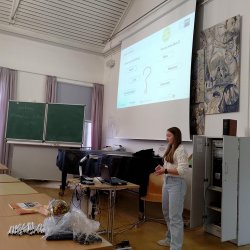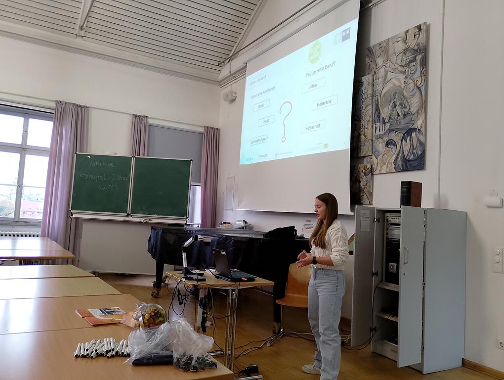 Da auch wir uns beworben hatten, wurde im Rahmen des Moduls zur Berufsorientierung unsere 9. Klassen von einer Auszubildenden zur Einzelhandelskauffrau und einer Auszubildenden zur Marketingkauffrau besucht. Beide Referentinnen zeigten sich sehr zufrieden mit ihrem bisherigen Berufsweg, berichteten vom Alltag in Betrieb und Berufsschule und zeigten Karrieremöglichkeiten und ihren Verdienst auf.