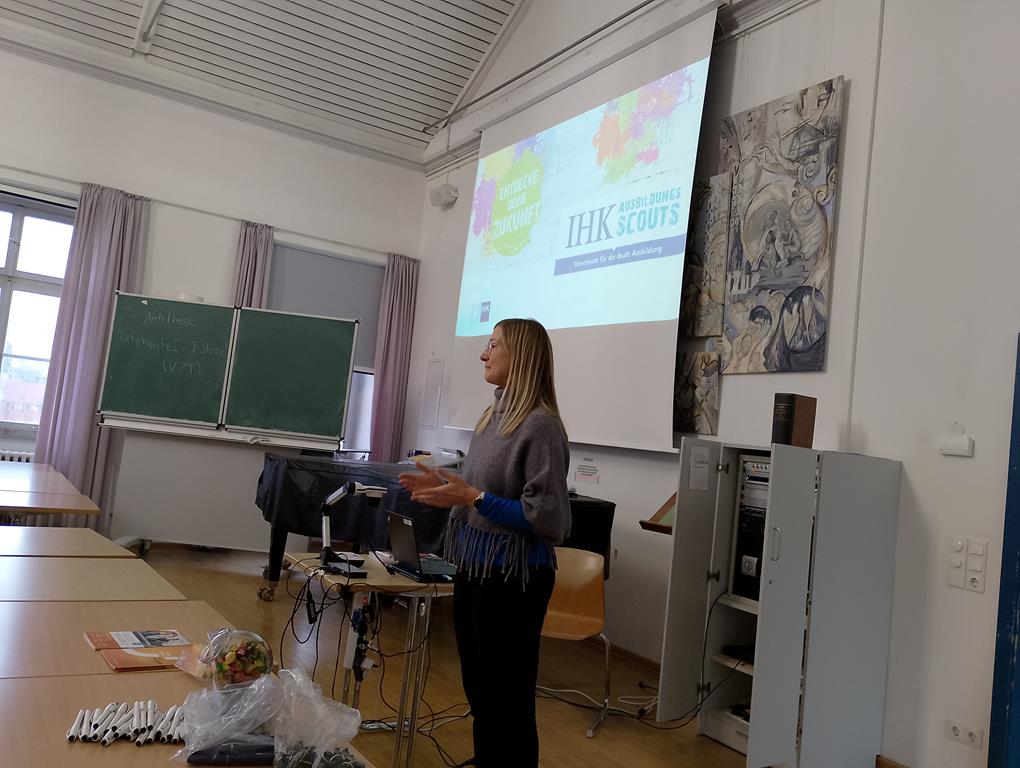 Im Rahmen des Projekts der „IHK-Scouts“ besuchen Auszubildende Schulklassen, um einen Einblick in die duale Ausbildung und das Leben als Azubi zu geben.