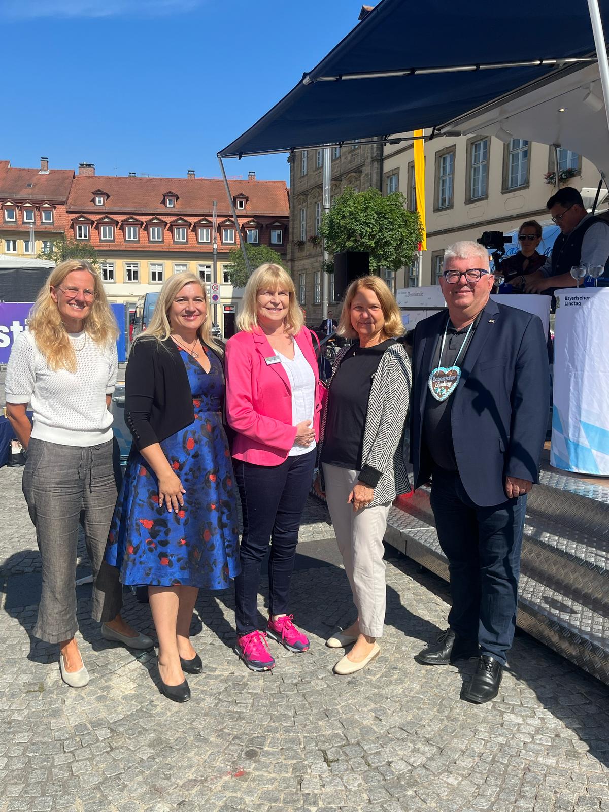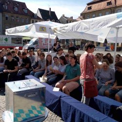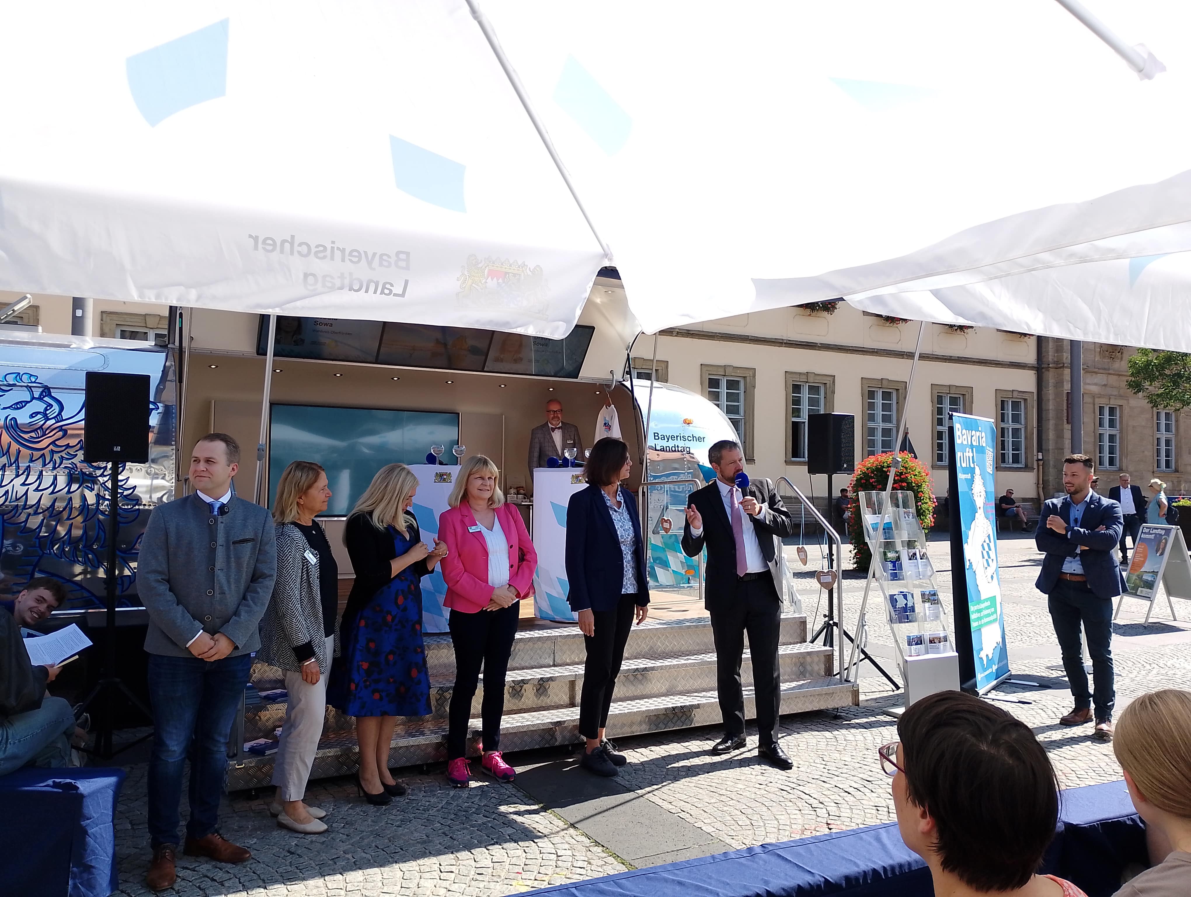 Am 25.7.2025 machte der Landtagstruck am Maxplatz Halt und unsere PuG-Kurse der 12. Klassen folgten der Einladung. Etwas mehr als 60 Minuten lang hatten unsere Schülerinnen und Schüler die Gelegenheit, unter Moderation von Landtagspräsidentin Ilse Aigner Fragen an die Landtagsabgeordneten Melanie Huml, Florian Köhler, Ursula Sowa und Sabine Gross zu richten. Die Fragen deckten ein breites Spektrum ab: Ukrainekrieg, Arbeit als Mitglied des Landtags, Slogans aus dem letzten AfD-Wahlkampf, Lobbyismus und Abtreibung. Besonders hervorzuheben ist, dass unsere Schülerinnen und Schüler mutig nachfragten und sich nicht mit vagem Herumlavieren zufriedengaben, wenn eine Antwort nicht oder nur ausweichend beantwortet wurde, so dass am Ende wirklich Unterschiede zwischen den Parteien erkennbar wurden. Nach ca. einer Stunde endete die Diskussion. Unsere Schülerinnen und Schüler schätzten die Veranstaltung als sehr gewinnbringend ein und wurden von Frau Aigner für ihr Engagement gelobt.