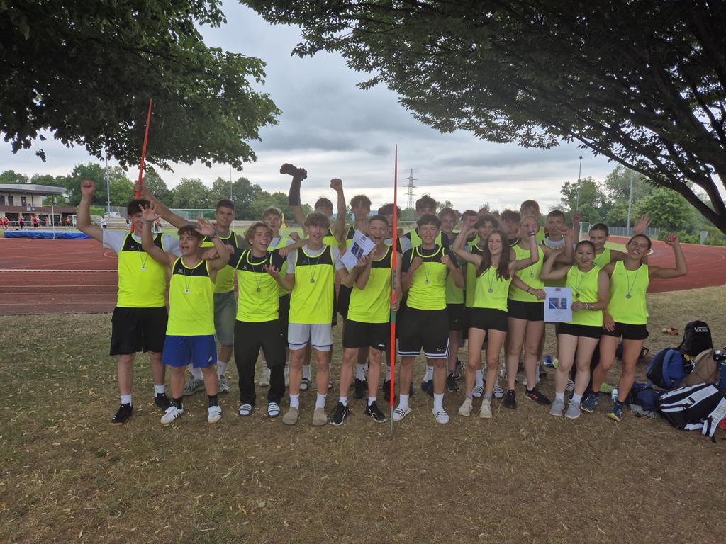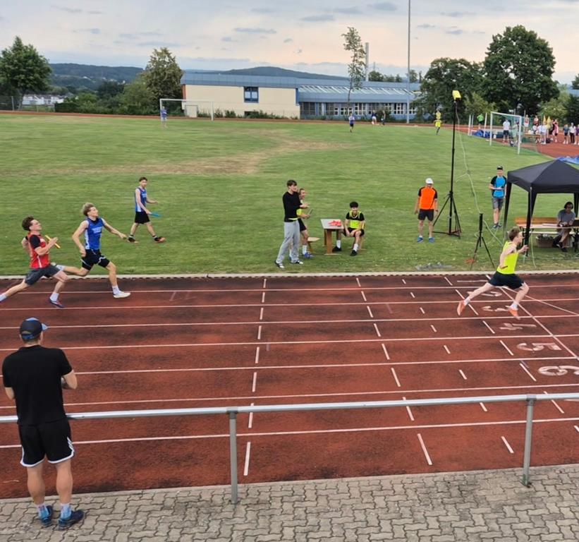 Die Schulmannschaften der Altersklassen Jungen II und die neue Mixed III qualifizierten sich mit ihren tollen Ergebnissen im Stadtfinale Bamberg für das Bezirksfinale in Lichtenfels. Dort mussten sie in den leichtathletischen Disziplinen Staffel, Sprint, Weit- und Hochsprung, Ball- und Speerwurf sowie Kugelstoß und 800m-Lauf gegen die ebenfalls angereisten Schulen aus Coburg, Lichtenfels und Bamberg antreten. Da ein Athlet höchstens dreimal antreten darf, gewinnt am Ende die Mannschaft mit der besten Teamleistung. Unsere Vertreter vom E.T.A. in den gelben Trikots gaben wirklich alles und führten zeitweise den Wettbewerb sogar an. Die anderen Schulen waren beeindruckt, jedoch ebenso hochmotiviert, sich mit dem Tagessieg für das Landesfinale in Ingolstadt zu qualifizieren. Am Ende des Tages reichten die gesammelten Punkte im Lichtenfelser Stadion sogar für beide Mannschaften der mitgereisten Betreuer Mark und Bogner zum 2. Platz, der mit Silbermedaillen belohnt wird. Herzlichen Glückwunsch an beide Mannschaften zur doppelten Vizemeisterschaft in Oberfranken!