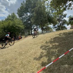 Am 10.7.25 traten die vier Mountainbiker zum Landesfinale in Herrieden an, um im Bikepark rund um die Bärenloch-Hütte als oberfränkischer Meister um den Landestitel zu kämpfen. Vor Ort war von der hiesigen Realschule alles perfekt vorbereitet worden und auch die Lokalprominenz und die Presse ließen sich dieses Spektakel rund um den höchsten Hügel Herriedens nicht nehmen. Die Mountainbiker vom Stephansberg, begleitet von Herrn Bogner und dem Bike-Beauftragten Sven, mussten wie schon im Bezirksfinale zunächst einen Technik-Parcours über fünf anspruchsvolle Hindernisse bewältigen. Jeder Fehler wird hier mit acht Strafsekunden belegt, die später auf der Strecke wieder mühsam reingefahren werden müssen. Unser Team hat sich aber sehr geschickt angestellt, sodass nur zwei Fehler die Gesamtfahrzeit belasteten. Dann war es so weit, die anstrengende Rundstrecke musste nun drei mal bewältigt werden. Unsere Biker gaben an den heftigen Steigungen, in den Engstellen im Wald und auf den kurveneichen Abfahrten alles, um die bestmögliche Zeit fürs Team beizusteuern. Lasse W. startete in der stärksten Gruppe und schaffte es mit einer Gesamtzeit von 19:21 min als Vierter ins Ziel! Sein Zwillingsbruder Ole hatte einen bärenstarken Tag: er startete erst in der zweiten Gruppe und schaffte es , die erste Gruppe aufzuholen und dort noch vier Fahrer zu überholen. Zwischenzeitlich war er lange alleine auf der Strecke unterwegs, was ihm eine enorme Willensstärke abverlangte. Seine Gesamtzeit von 20:17 min katapultierte ihn auf Rang 7. In der dritten Gruppe gestartet ist Jonathan G. Ohne richtiges Training, aber hochmotiviert schaffte er es als Zweitbester seiner Gruppe ins Ziel. Seine Zeit von 22:21min reichten für Rang 20 in der Einzelwertung. Clemens A. trat in Gruppe 4 fürs E.T.A. in die Pedale und überquerte nach 25:02 min die Ziellinie. Das war knapp: nur 35 Sekunden trennten die Mannschaft von Silber. Ihre tolle Teamleistung wurde bei der abschließenden Siegerehrung, durchgeführt von Thomas Glatzeder (Landesstelle für Schulsport), mit der großen Bronze-Medaille belohnt. Als Geschenk gab es auch noch ein cooles Sportshirt dazu. Ein schönes Event, das Allen in guter Erinnerung bleiben wird. Herzlichen Glückwunsch!