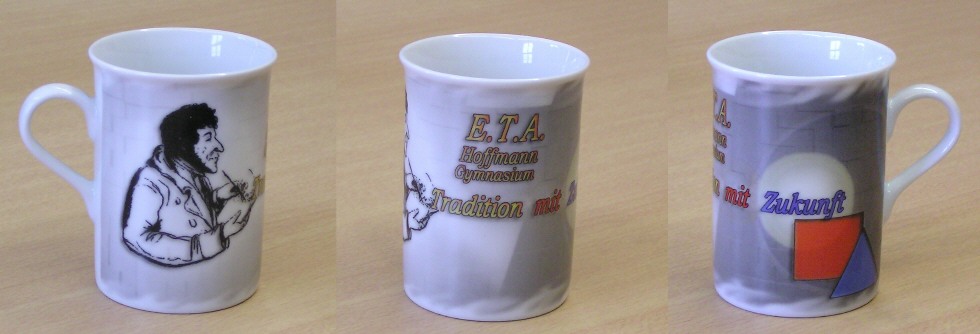 Bis zum Jubiläumsjahr der Schule 2016 erschien alljährlich pünktlich zum Schulfest eine neue, vom Freundeskreis herausgegebene E.T.A.-Tasse. Die attraktiven Motive entstammten häufig dem Kunstunterricht. Mit dem Erlös aus dem Verkauf der beliebten Sammelstücke unterstützt der Freundeskreis aktuelle Projekte. Die Herstellung der Tassen war durch die großzügige Unterstützung des ehemaligen Freundeskreis-Vorsitzenden Herrn Fischer mit seinem gleichnamigen Porzellanunternehmen möglich gewesen.