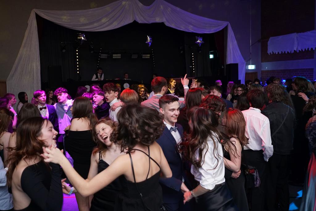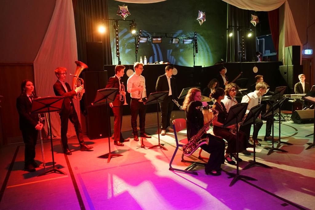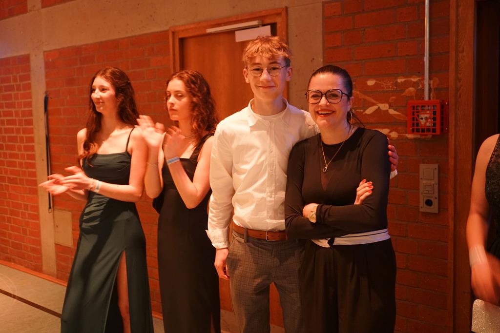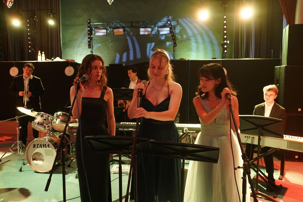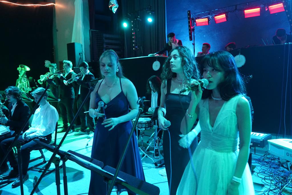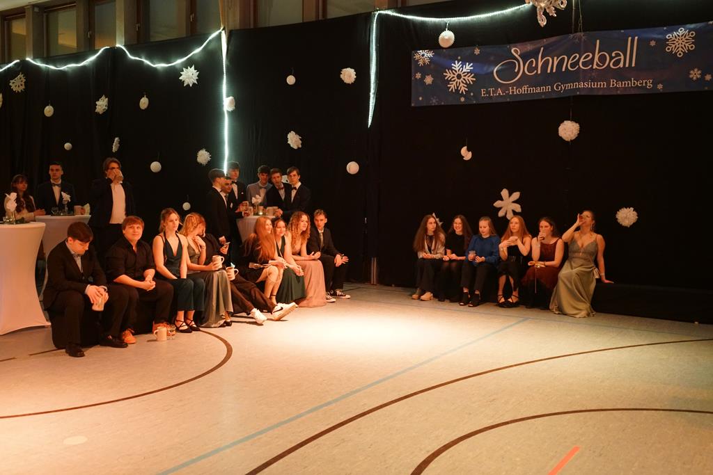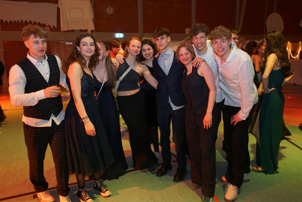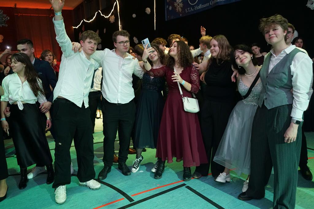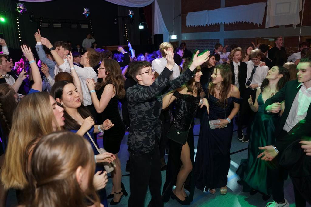 Am Samstag, den 9. März 2024 verwandelte sich die Untere Turnhalle einmal mehr in einen Ballsaal - geschmückt mit weißen Luftballons, silber glitzernden Sternen, warmweißen Lichtern und stimmungsvoll dekorierten Tischen. Nach der Eröffnung des Balls durch Emma Müller von der SMV, Dr. Michael Grimm vom Elternbeirat und Johannes Klehr, Mitglied der erweiterten Schulleitung, unterhielt zunächst die Jazz-Combo die ankommenden Gäste. An die 450 Personen in festlicher Abendgarderobe, auch aus den benachbarten Schulen, zeigten anschließend entweder, was sie in den Tanzkursen gelernt hatten, oder bewegten sich einfach "freestyle" zur Musik, die DJ Kai-Uwe Scholz nach den Wünschen der Schülerinnen und Schüler auflegte.