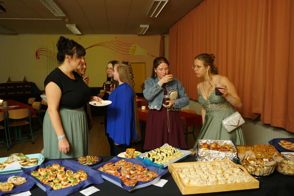 Am Getränkeausschank des Elternbeirats und in der Q12-Bar herrschte fast immer Hochbetrieb, und auch das kostenlose Buffett des Elternbeirats war gegen 23 Uhr "abgeräumt". Rund eine halbe Stunde nach Mitternacht ging ein ausgelassenes, fröhliches Fest zu Ende, das SMV und Elternbeirat dank zahlreicher Helferinnen und Helfer erneut auf die Beine stellen konnten. Herzlichen Dank dafür!