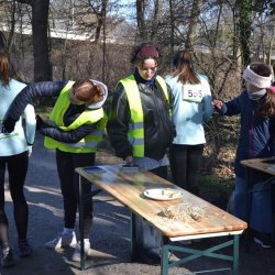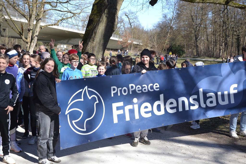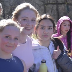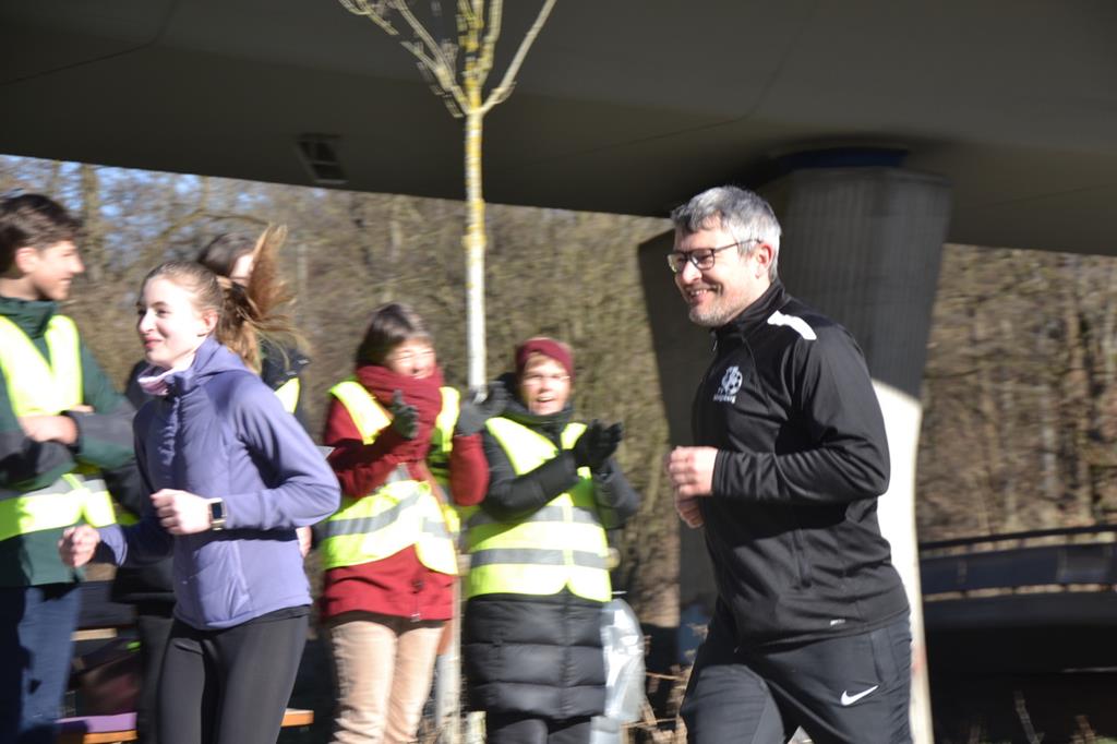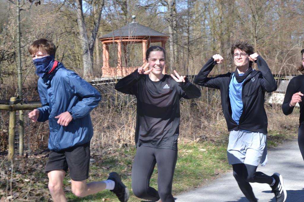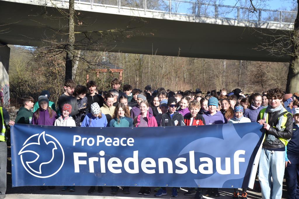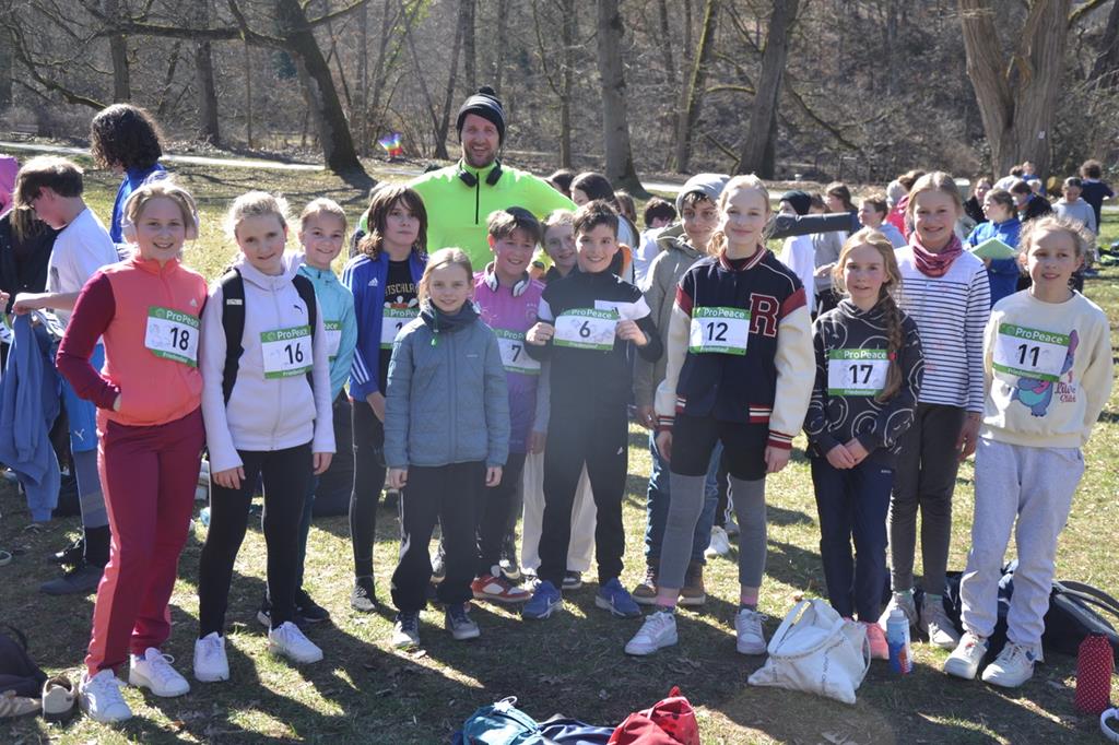 Das wunderbar sonnige Vorfrühlingswetter sorgte für beste Bedingungen für den großen Spendenlauf der ganzen Schule im Hain. Morgens war es zwar noch zapfig kalt, aber das hielt die Schülerinnen und Schüler nicht davon ab, richtig viele Runden zu sammeln. Besondere Motivation gab es durch mitlaufende Lehrer! Zu Stärkung gab es Fair-Trade Bananen, duch die K12 geschält, gehälftet und an die Strecke gehalten wurden und Wasser vom Sanidienst-Team, das den ganzen Tag über bereit war. Danke an alle fleissigen Rundensammler und die großartige Unterstützung für den Frieden durch das Spenden in den Familien!