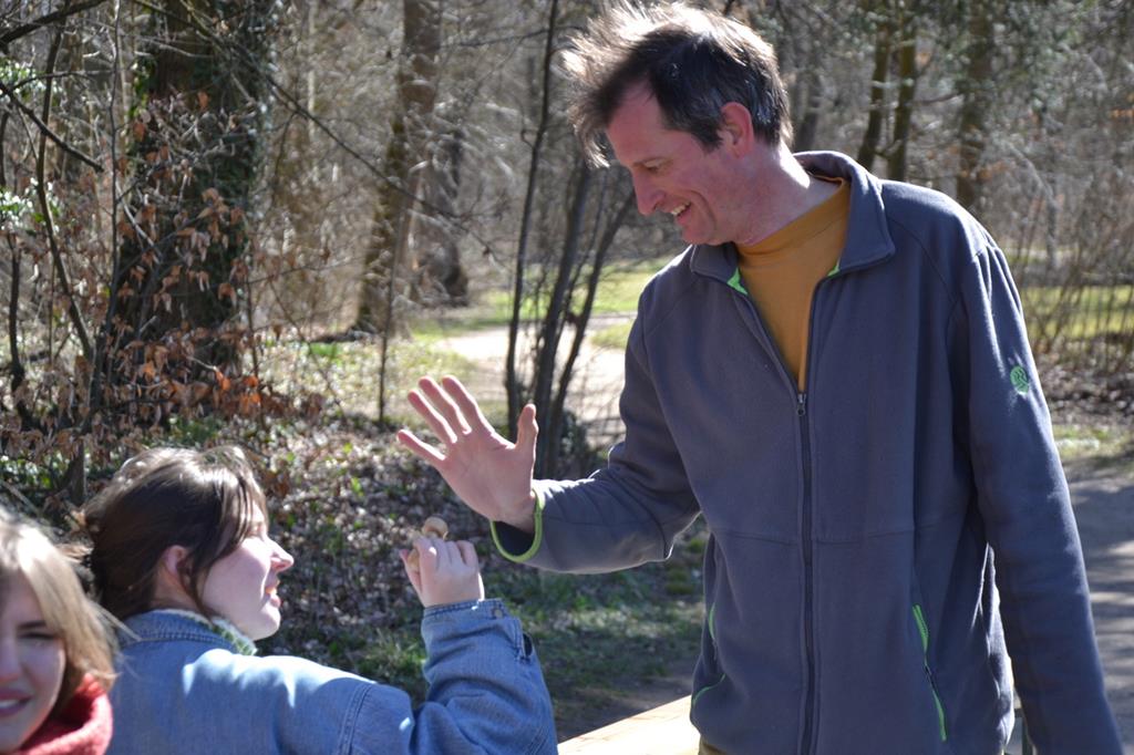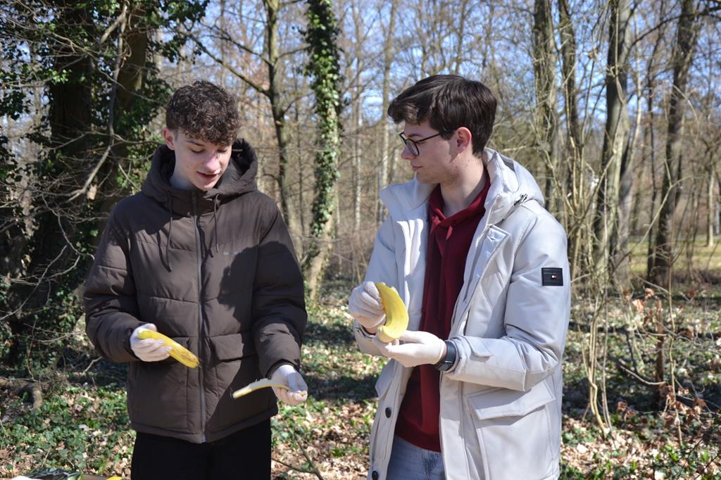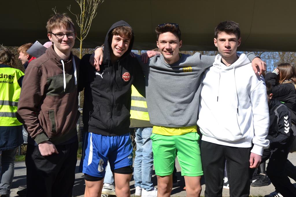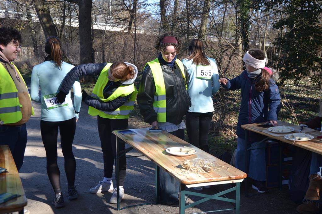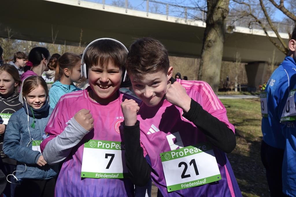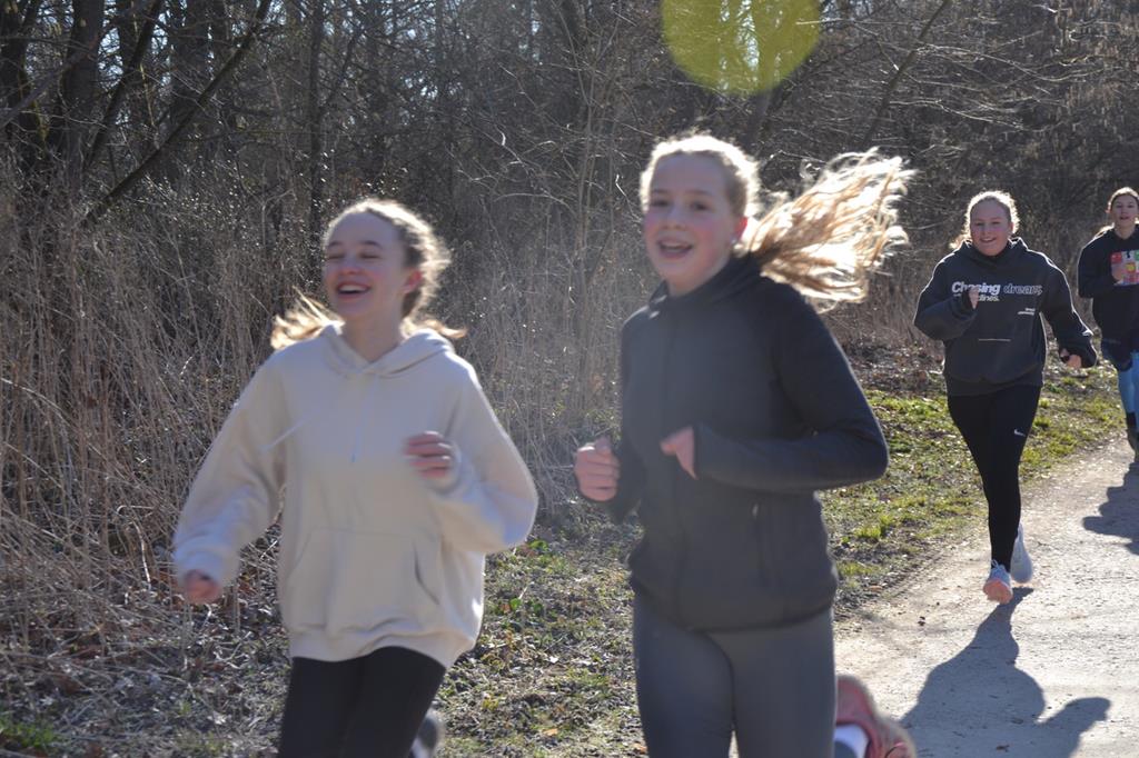 Das wunderbar sonnige Vorfrühlingswetter sorgte für beste Bedingungen für den großen Spendenlauf der ganzen Schule im Hain. Morgens war es zwar noch zapfig kalt, aber das hielt die Schülerinnen und Schüler nicht davon ab, richtig viele Runden zu sammeln. Besondere Motivation gab es durch mitlaufende Lehrer! Zu Stärkung gab es Fair-Trade Bananen, duch die K12 geschält, gehälftet und an die Strecke gehalten wurden und Wasser vom Sanidienst-Team, das den ganzen Tag über bereit war. Danke an alle fleissigen Rundensammler und die großartige Unterstützung für den Frieden durch das Spenden in den Familien!