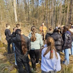 Ein besonderes Highlight in diesem Jahr war der Waldtag am 2. April: Ausgestattet mit festem Schuhwerk und Arbeitshandschuhen verbrachten die Achtklässler einen Tag im Wald, wo sie unter Anleitung eines Försters selbst mit anpackten. Neben ökologischen Zusammenhängen standen auch handwerkliche Tätigkeiten und Teamarbeit im Vordergrund – eine Erfahrung, die bei vielen bleibenden Eindruck hinterließ.