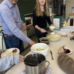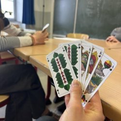 Zum Auftakt der Woche fand der Tag der Basiskompetenzen statt. Die Schülerinnen und Schüler konnten aus einer breiten Auswahl an Workshops wählen – mit Themen, die so vielfältig waren wie der Alltag selbst: Es gab beispielsweise Workshops in Schuldenprävention, Brotaufstriche selbst machen, Orientierung ohne digitale Hilfsmittel, Holzkunde, Zaunstreichen, Römisch Kochen, Schafkopf und praktisches Arbeiten mit Dübel und Bohrmaschine. Ziel war es, Fähigkeiten zu vermitteln, die im Alltag häufig vorausgesetzt, aber selten bewusst gelernt werden.