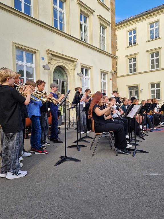 Auch in diesem Jahr fand an unserer Schule wieder das traditionelle Wandelkonzert statt; ein musikalisches Highlight im Schuljahr, das zahlreiche Besucherinnen und Besucher anzog. Am Abend des 9.Juli konnten die Gäste verschiedene musikalische Darbietungen an wechselnden Orten auf dem Schulgelände erleben.
