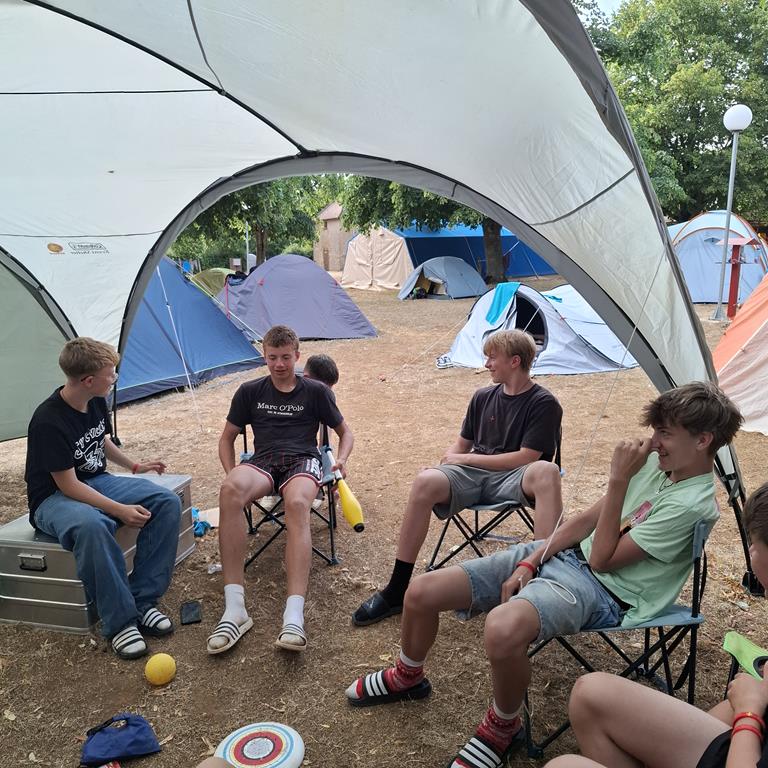 Am Abend vom 12. Juli haben sich 34 Schüler und Schülerinnen der 9. Klassen getroffen, um gemeinsam mit Herrn Rothmann und Frau Lechner, K12 Schülern und ehemaligen E.T.A.lern nach Taizé zu fahren. Die Hinfahrt verlief ohne Komplikationen, weshalb die Ankunft bereits um ca. 07:00 Uhr war. Dann hieß es erstmal Zelte aufbauen, bevor wir den ersten Gottesdienst um 10 Uhr mitgefeiert haben. Die Stimmung war sehr festlich und alle haben kräftig mitgesungen. Den Nachmittag haben wir entspannt gestaltet und abends gab es die erste richtige Mahlzeit: Couscous und anschließend ein weiteres Gebet.