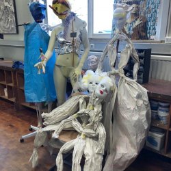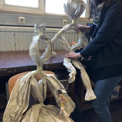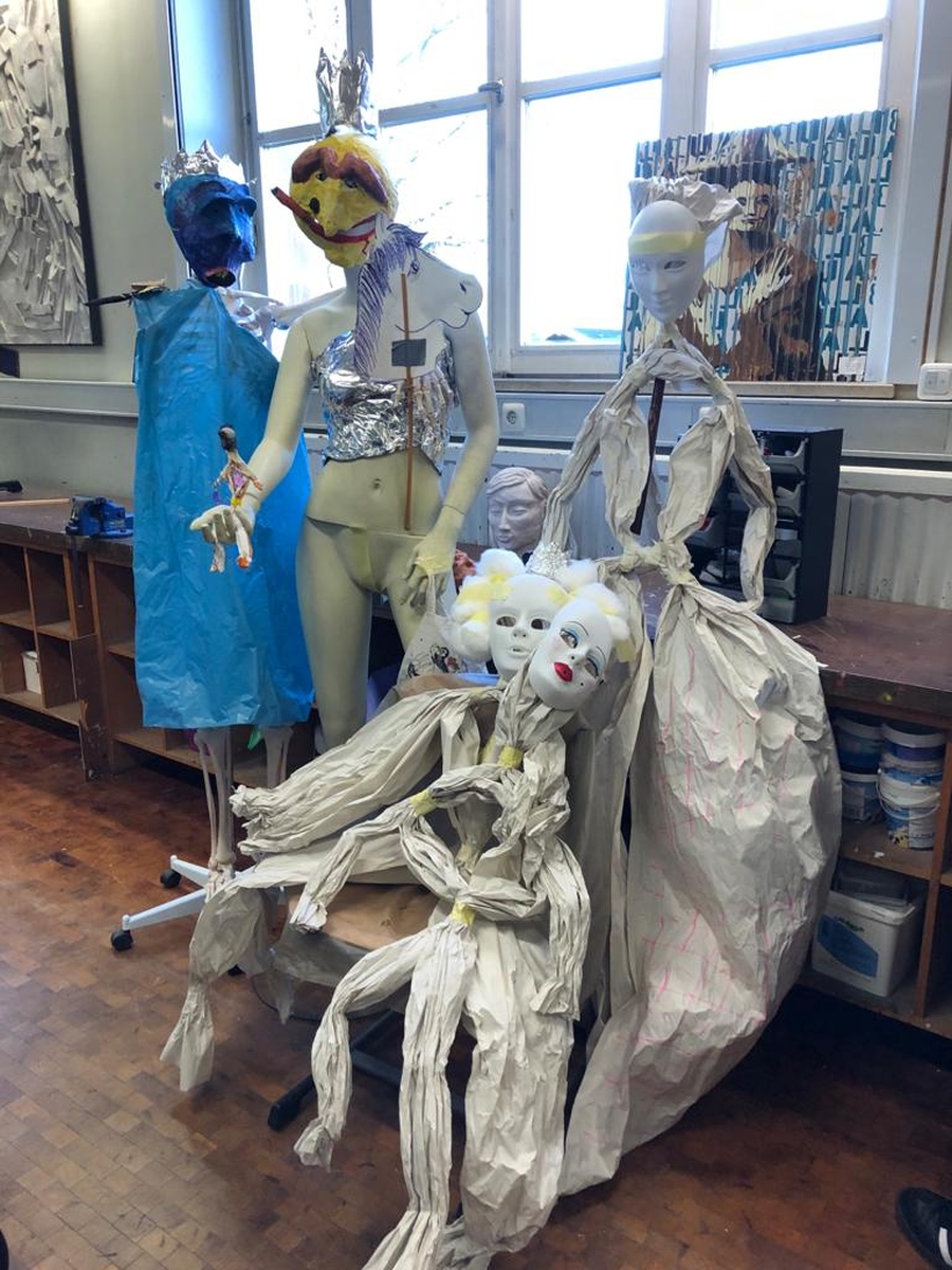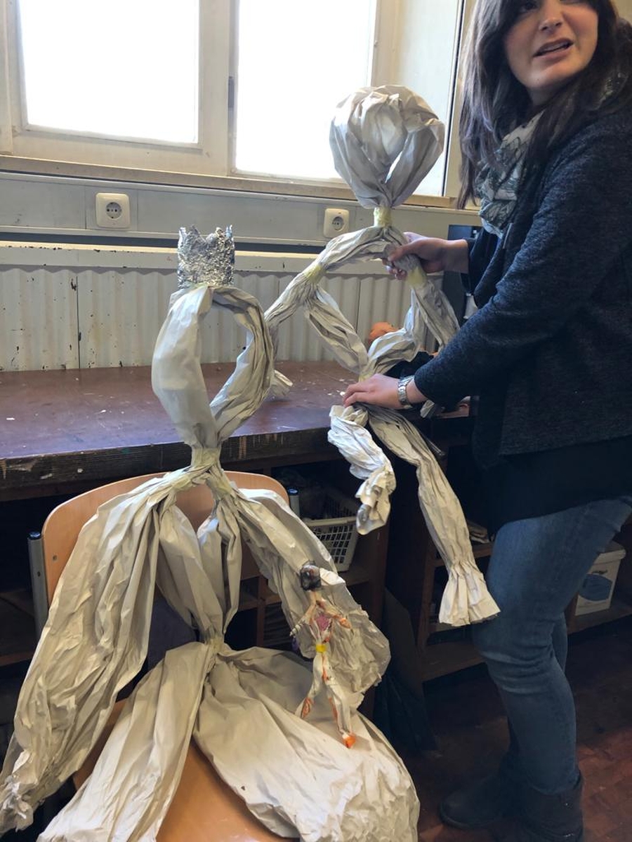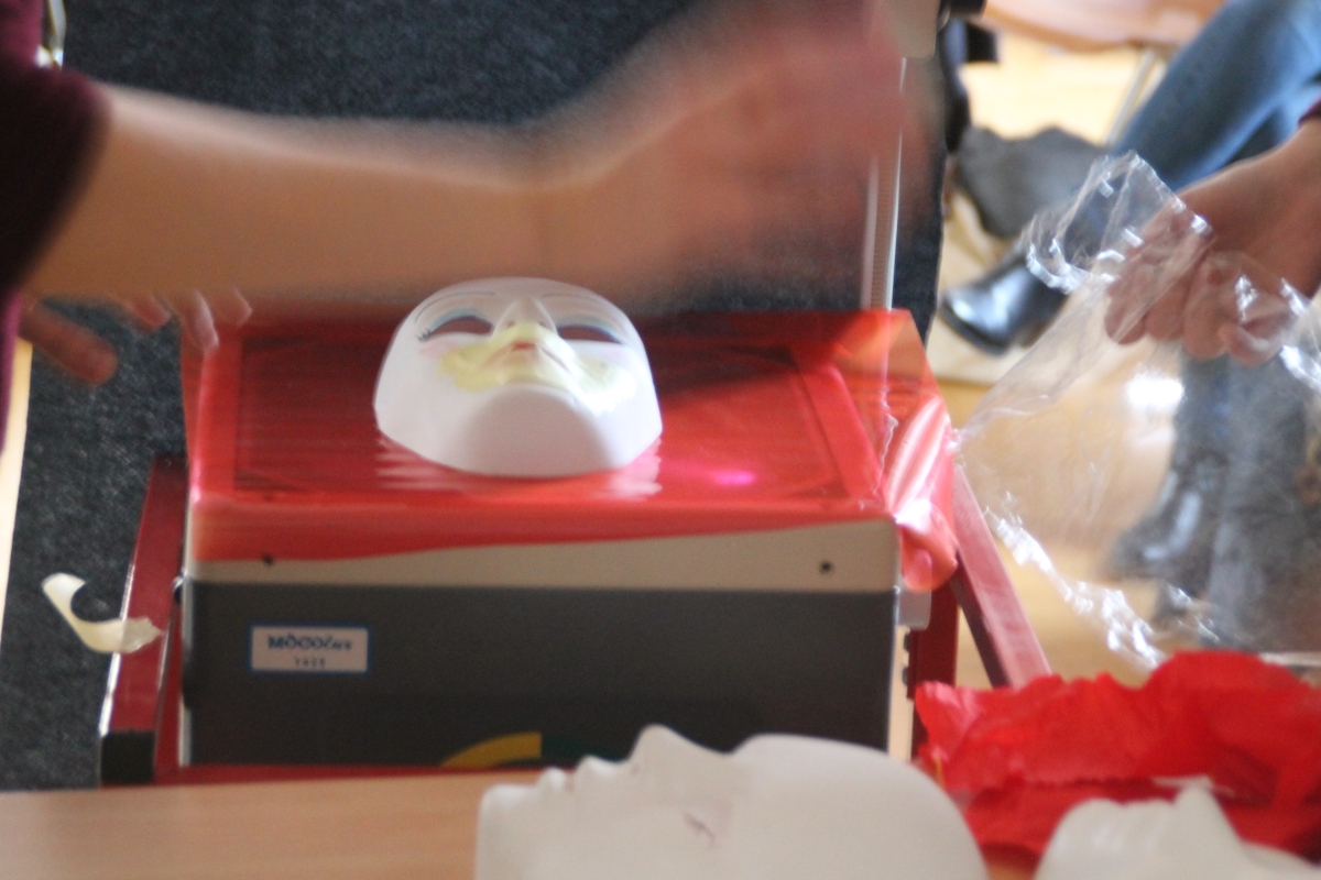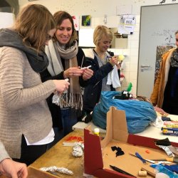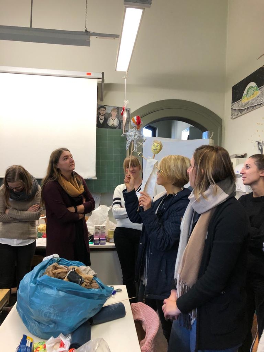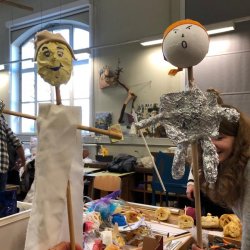 Nach der Begrüßung durch den Schulleiter, Markus Knebel, führte Ulrike Endres, Schulleiterin am CVG Kulmbach und Multiplikatorin für "Szenisches Lernen" in der regionalen und überregionalen Lehrerfortbildung die Teilnehmer/innen in Grundelemente des personalen Spiels und der Körpersignale durch praktische Übungen ein. Derartig aufgewärmt durfte ans Basteln gegangen werden, denn bei Tina Morcinek wurden Einsatzmöglichkeiten für optische und haptische Spielträger erprobt – es entstanden Puppen, Schattenformen und Requisiten, die im Unterricht schnell und unkompliziert zur szenischen Bereicherung einsetzbar sind.