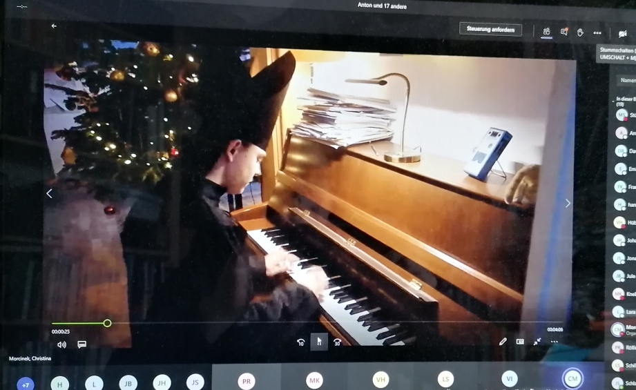 Ziel eines jeden P-Seminars sollte die Durchführung eines Projekts mit einem Projektergebnis und einer entsprechenden Präsentation am Ende sein. Bei den Theaterseminaren wird das Ergebnis naturgemäß auf der Bühne präsentiert. Doch bei diesem Seminar war alles anders, und so fand die Aufführung virtuell statt – die vom Seminar selbst entworfenen Szenen wurden in einer Videokonferenz per Film oder sogar live vor einer sehr eingeschränkten Öffentlichkeit aufgeführt. Ein ungewöhnlicher, aber durchaus anspruchsvoller Beleg der geleisteten Arbeit.