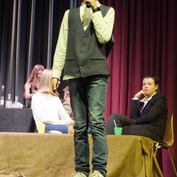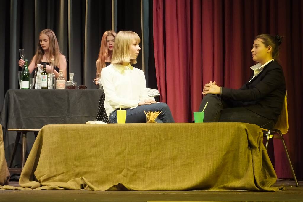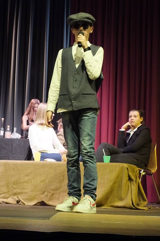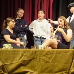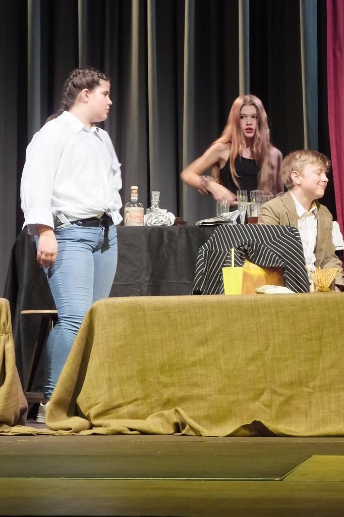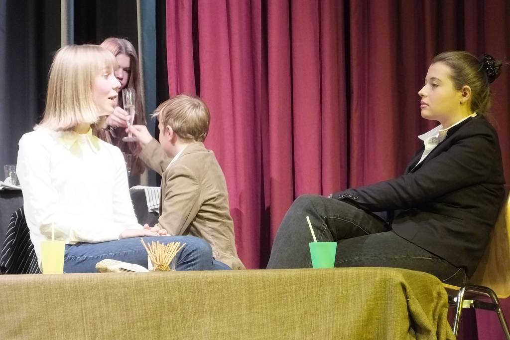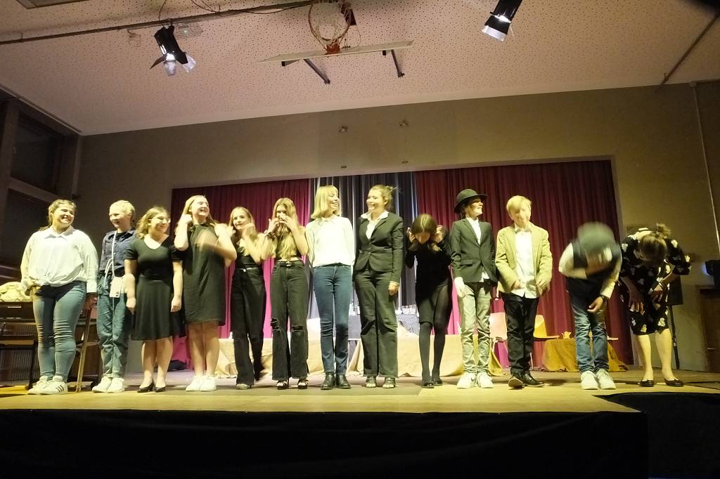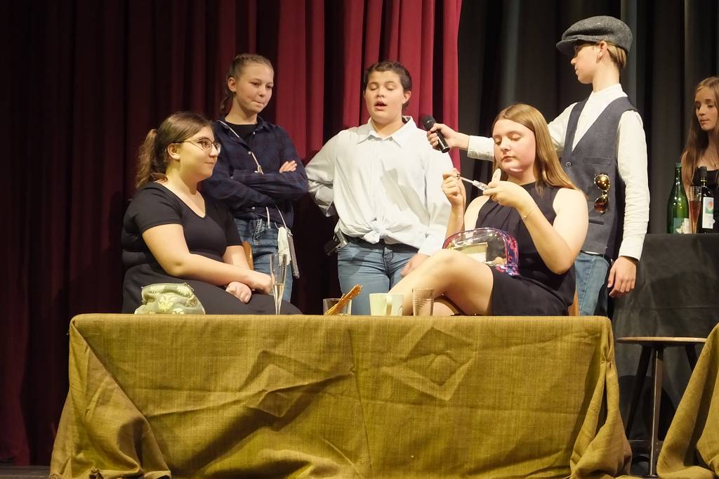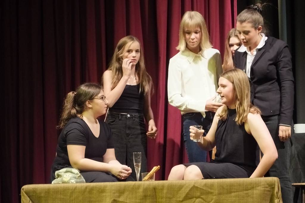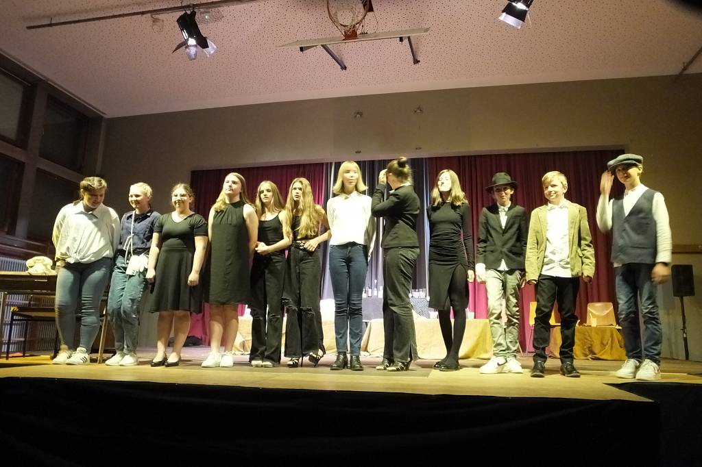 Ein fein gesponnenes Kriminaldrama hat sich die Theatergruppe der Unterstufe mit ihrer Leiterin Eva Böhnlein ganz in der Manier Agatha Christies ausgedacht und auf die Bühne gebracht. Hut ab vor der Leistung der Erstellung und Bewältigung des Textes! Dass zuletzt das Ende doch recht überraschend anmutet, kann nach der präzisen Mordermittlung verziehen werden. Die Siebtklässler konnten, stimmungsvoll untermalt und beleuchtet von den Technikern Sebastian Losgar und Alwin Hellwich, unter Beweis stellen, welche Theatertalente in ihnen stecken. Man darf sich auf die nächsten Auftritte der Truppe freuen!