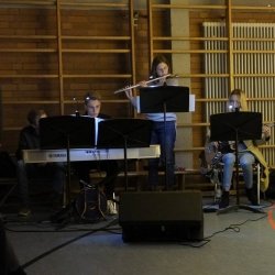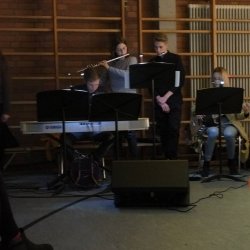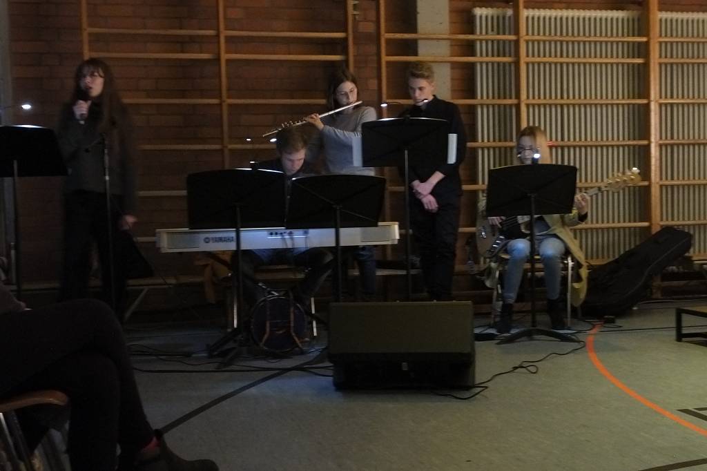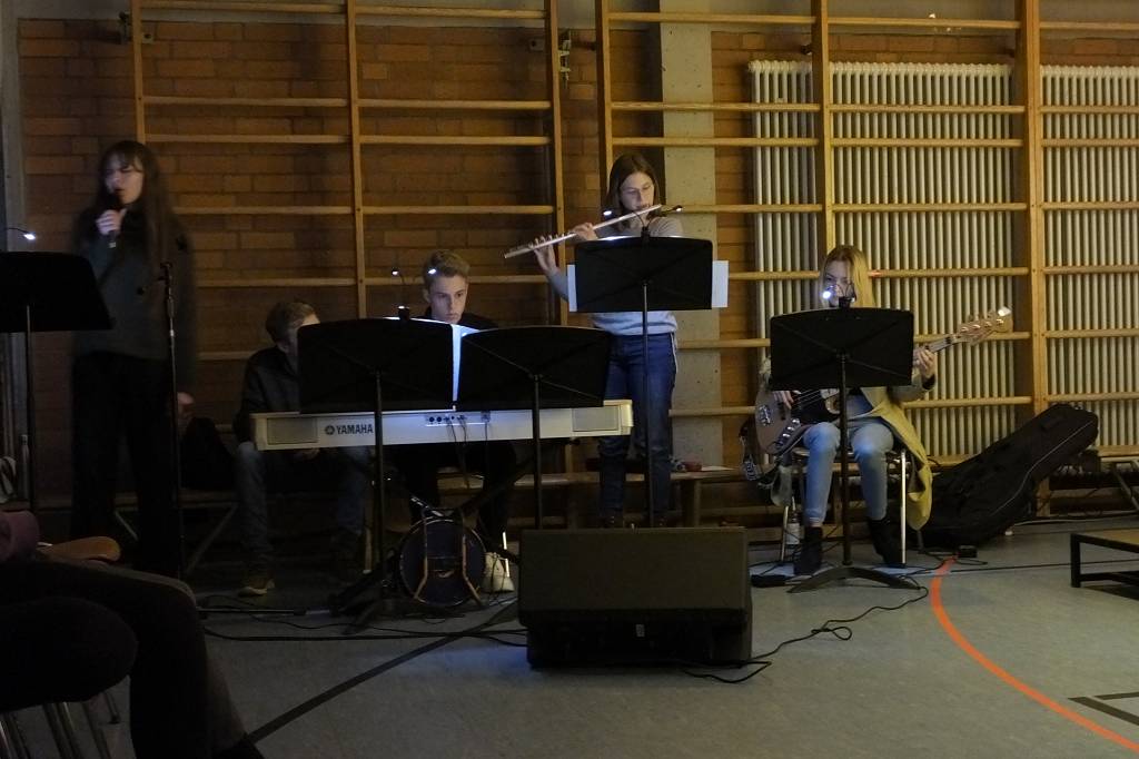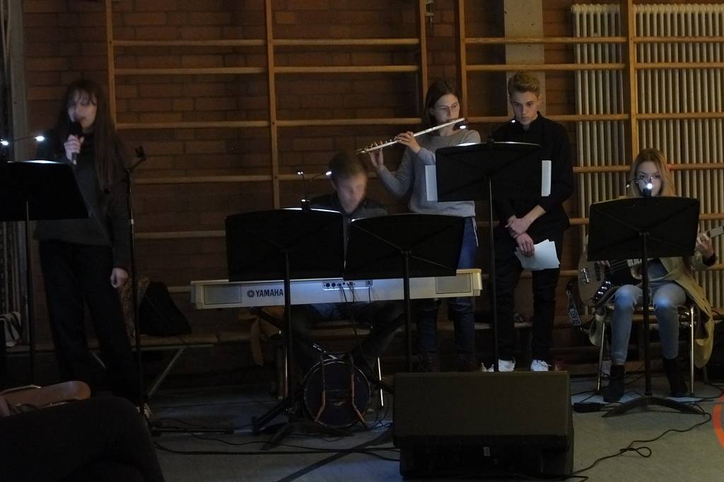 Piroska Emökey (8e), Niklas Kremer (10q), Simon Meisel (Q11), Merle Urlich (Q11) sowie Emily Weis (Q11) haben unter der Leitung von Rainer Seubeuld Stücke einstudiert, die auf „Neuland“ gekonnt die Atmosphäre verdichten.