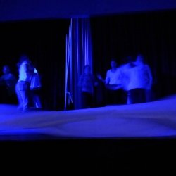 Mit jeder Theateraufführung betritt man „Neuland“ und muss sich überraschen lassen, von dem, was passiert. Dieses „Neuland“, das nun sogar den Titel entsprechend trug und am vergangenen Wochenende am E.T.A. präsentiert wurde, hielt für den Zuschauer eine Menge faszinierender Überraschungen bereit. Einer durch und durch engagierten Theatergruppe gelang es von Beginn an das Publikum mit seiner Geschichte, die sehr frei an die Geschehnisse von William Shakespeares „Der Sturm“ angelegt war, in Bann zu ziehen.