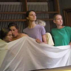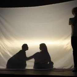 Tina Morcinek gelingt es mit dem geschickten Rückgriff auf das Spielelement seidiger Tuchbahnen eine stimmungsvolle Landschaft zu kreieren, die mal zum Spiegelbild vergangener Tage, dann zum stürmischen Meer und zuletzt auch zur Trugbild-Kulisse auf der Insel wird. Man genoss eine in sich sehr stimmige, abwechslungsreiche und kurzweilige Inszenierung, die dann auch noch mit musikalischer Live- Untermalung und einem sehr stimmungsvollen Licht-Konzept zu überzeugen vermochte.