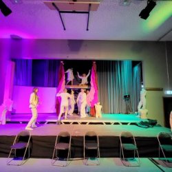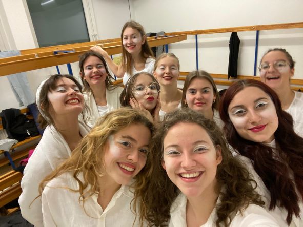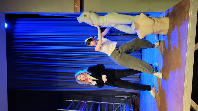 Und die Männer der Schauspieltruppe? Die haben sich – anders als die auf der Bühne – im Hintergrund gehalten, waren deshalb aber nicht weniger am großen Erfolg beteiligt. Jakob Hannusch und Paul Küffner sorgten nicht nur für passendes Licht und Ton, sondern erreichten durch Live-Filmübertragungen und viele Toneffekte eine Professionalität in der Technik, die das Spiel ungemein bereichert hat, da es dadurch noch eindrücklicher und anschaulicher wurde. Eine tolle Leistung.