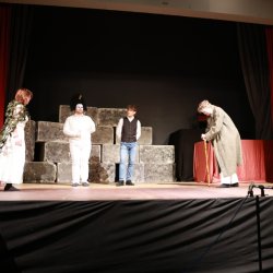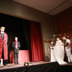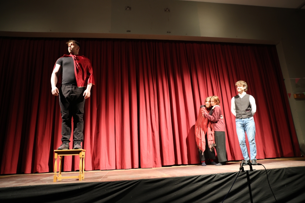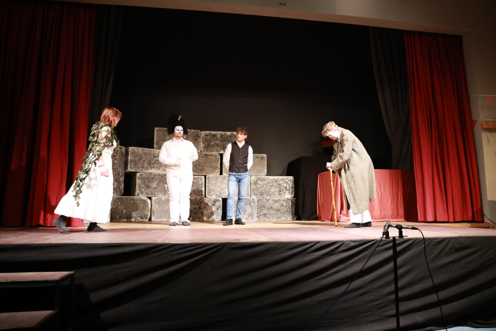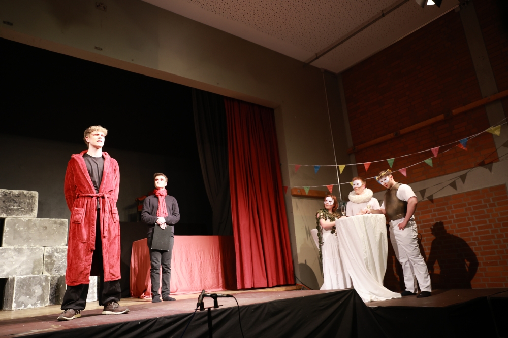 Die menschliche Existenz ist durch Machtmenschen bedroht – so scheint uns der Blick auf die Geschichte zu lehren – und die Menschheit ist fähig aus diesen Erfahrungen zu lernen? Diese Frage ist es, der das P-Seminar unter der Leitung von Martin Stübinger mit der Aufführung des Stücks von Max Frisch „Die chinesische Mauer“ nachgeht – und die vielleicht, so mutmaßt der einführende Begrüßungsredner, Dr. Schlauch, einen wohl weniger unterhaltsamen als viel mehr lehrreichen Abend verspricht. Wird er mit seiner Vermutung recht behalten?