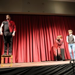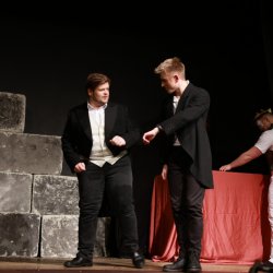 Die Vermutung des lehrreichen Theaterabends hat sich in vollem Maße erfüllt. Es hat sich aber auch gezeigt, dass die Vermittlung komplexer Menschheitsfragen auch auf anregend-konzentrierte, kurzweilige Weise erfolgen kann. Denn das bis in die letzte Haltung fokussiert spielende P-Seminar hat gezeigt, dass es gerade mit einer tiefgründigen, fokussierten Durchdringung des Stücks – Herr Stübinger sprach von schier unendlichen, fruchtbaren Diskussionen über Bedeutungen und Interpretation – in seinen Bann zu ziehen vermochte. Dies ist sicherlich nicht nur dem sehr engagierten P-Seminar, sondern auch dem im Hintergrund Strippen ziehenden Spielleiter zu verdanken. Über zwei Stunden Spielzeit waren zuletzt im Nu verflogen – und am Ende bleibt nach diesem intellektuellen Theaterabend viel beim Zuschauer hängen, eine Erkenntnis aber auf jeden Fall: „Wir können uns das Abenteuer der Alleinherrschaft nicht mehr leisten!“