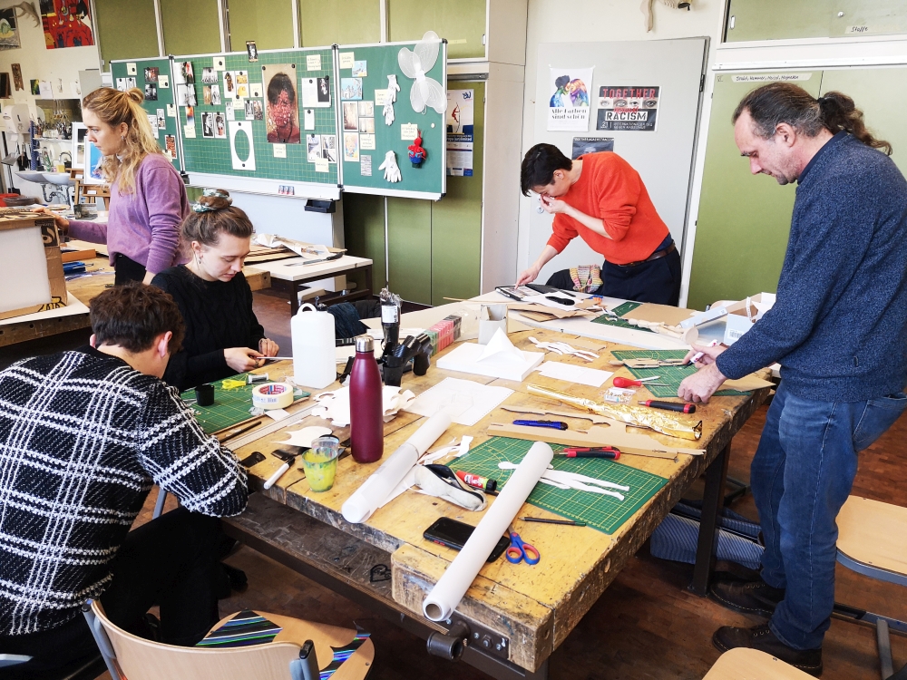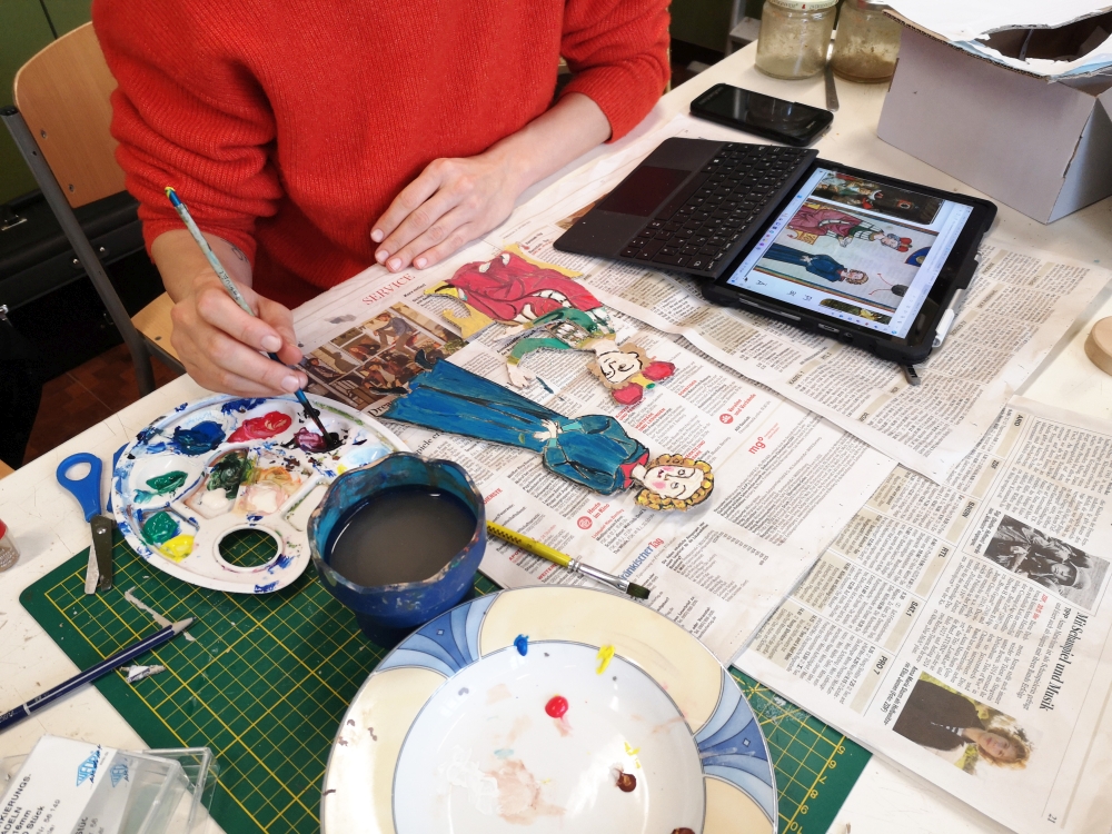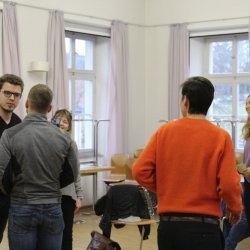 Der erste Tag war angefüllt mit vielen Informationen über die verschiedensten Einsatzmöglichkeiten szenischen Lernens. OStDin Endres veranschaulichte zunächst, durch welche körpersprachlichen und praktischen Übungen die Basis für szenisches Arbeiten gelegt werden kann, um anschließend einen kurzen Überblick über die zentralen Methoden zu geben. Dann erkundeten alle die Möglichkeiten des Einsatzes optischer und haptischer Spielträger unter der Leitung von StRin Miriam Böttcher. Mittags standen die akustischen Mittel im Vordergrund, die von StRin Susanne Friedrich eindrucksvoll vermittelt wurden. In unterschiedlichen Arbeitsgruppen erarbeiteten die angehenden Lehrkräfte dann Beispiele des Einsatzes szenischer Elemente in der Unterrichtspraxis, wobei die Fächer Englisch (OStRin Morcineck) und Deutsch (OStRin Kießling) hinzu kamen. Die Ergebnisse wurden zum Abschluss der Fortbildung im Plenum präsentiert.