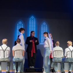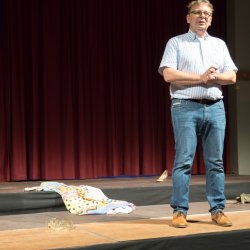 So schließt das Stück – ein letztes Mal stimmungsvoll kommentiert durch die drei Spielleiterinnen – mit dem Blick auf die großen Fragen des Daseins: Die Schönheit des Lebens liegt in den einfachsten Momenten – daran wird das Publikum erinnert und kann sich freuen, einen wundervollen, abwechslungsreichen und kurzweiligen Moment gerade live miterlebt zu haben. Einfach war diesen Moment zu gestalten jedoch sicherlich nicht, auch wenn alles an diesem Abend mühelos und ganz selbstverständlich wirkt. Ein Meister hat hier seine Hand im Spiel und damit ist nicht der Romanautor Thornton Wilder gemeint: Martin Stübinger hat wieder einmal gezeigt, dass die Inszenierung eines Klassikers, der auf den ersten Blick vielleicht aus der Zeit gefallen scheint, durch gekonnte Regieeinfälle und Herauskitzeln all der begeisternden Fähigkeiten der jungen Schauspielerinnen und Schauspieler zu überzeugen vermag: „Ach, [ist] das Leben nicht […] wunderbar!“ Danke für diesen schönen Moment.