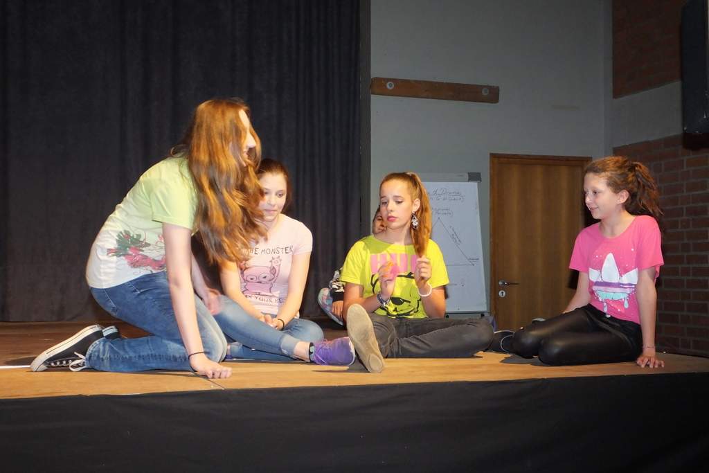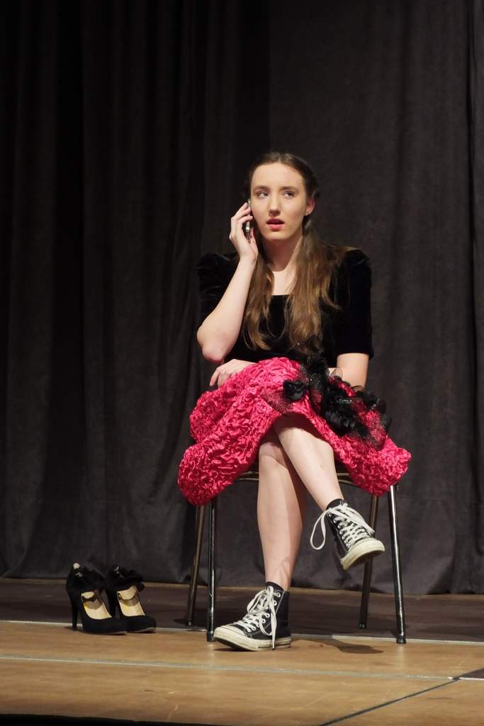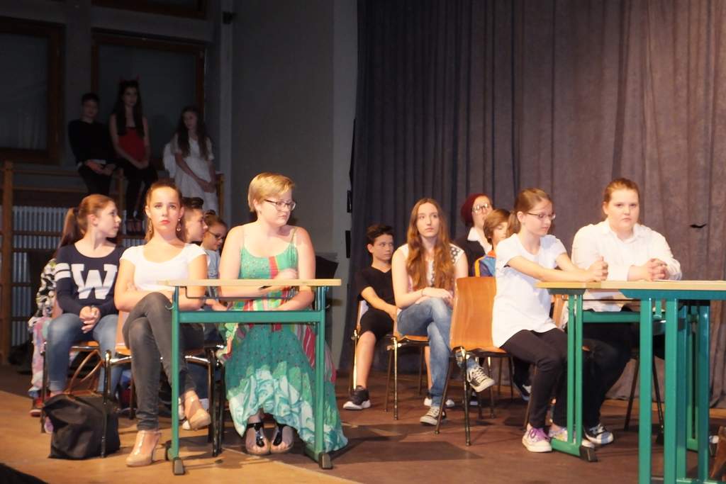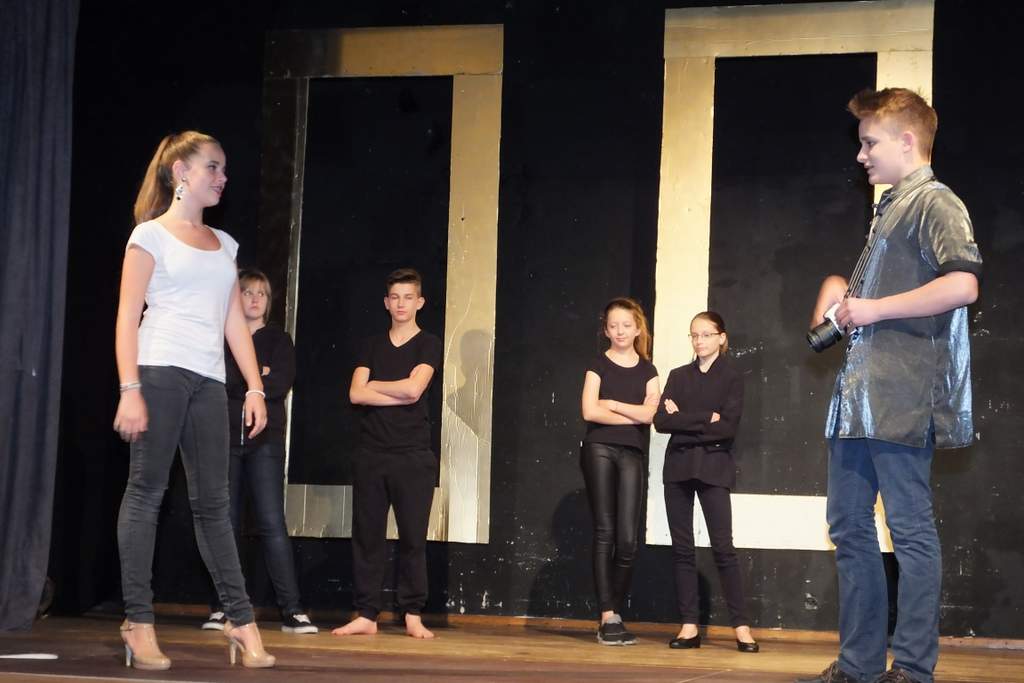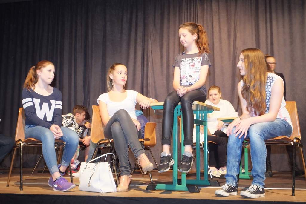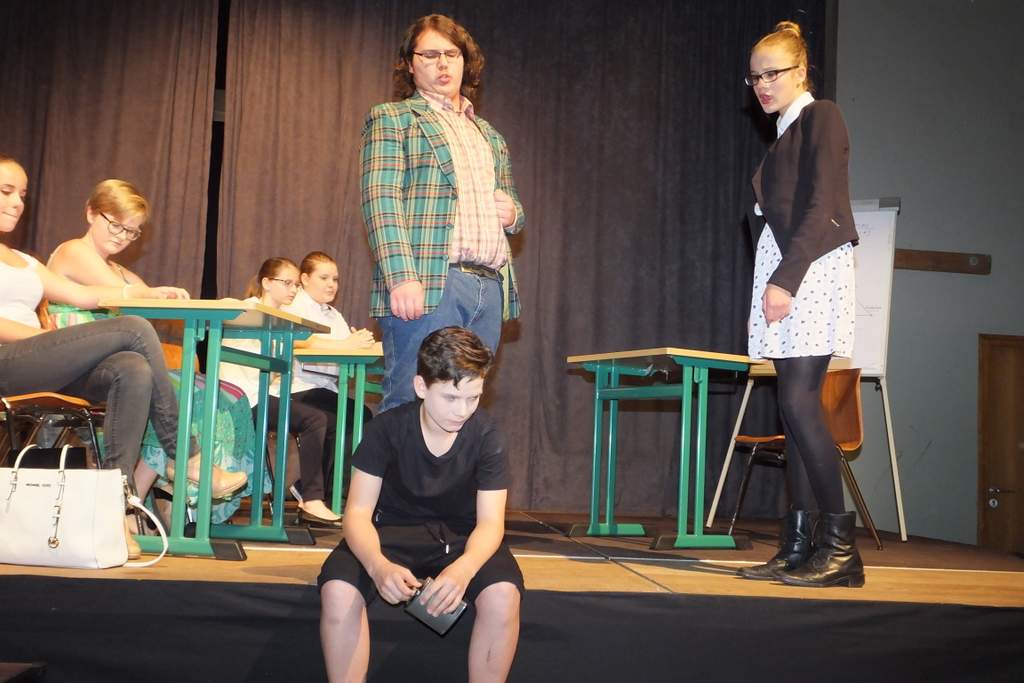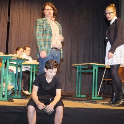 Wir sehen eine typische Gruppe – gibt es hier das „Typische“ überhaupt? – Jugendlicher, die ihren Lebensweg suchen, teilweise aufmüpfig, aber auch schüchtern, teilweise leistungsorientiert, manchmal pubertär mit dem anderen Geschlecht beschäftigt, oder „nur“ auf Sport konzentriert, ohne sich wirklich für die Mitschüler oder „das Leben“ zu interessieren. Da sind sie also, Maria Kroack überzeugend als die zickige Stella, die es ihrem sportlichen Freund, selbstverliebt, aber auch selbstmitleidig auf die Bühne gebracht von Luca Heinl, immer nur recht machen will. Da ist Zicke Nummer zwei namens Carmen, deren Hang zu reichen Männern wohl mit der Lektüre diverser Hochglanzblätter erklärt werden kann, die von Henrike Plötner erschreckend echt dargestellt wird – wie im richtigen Leben eben.