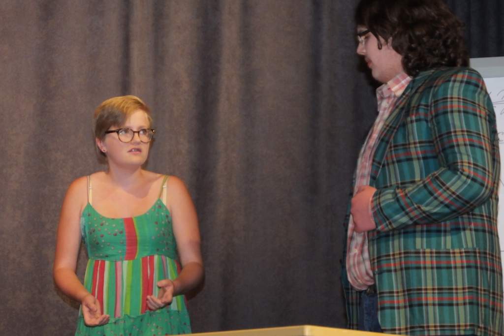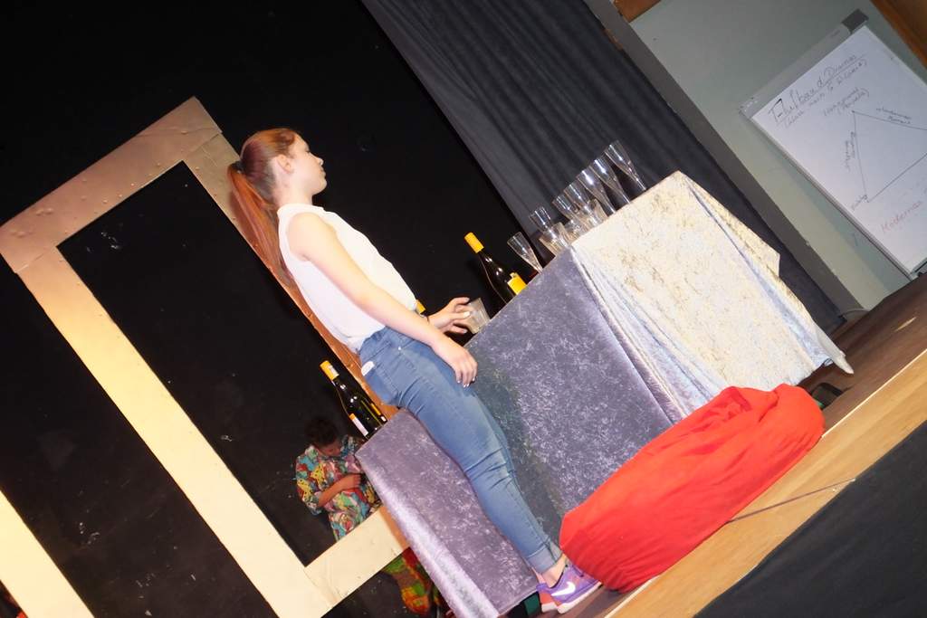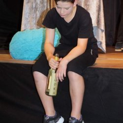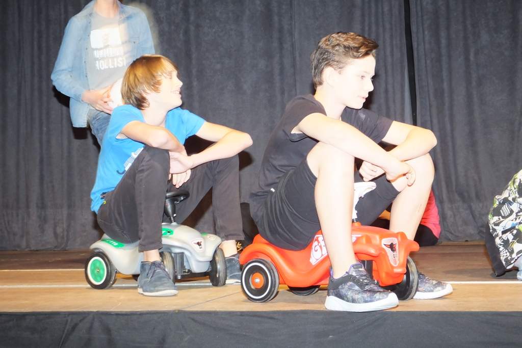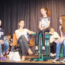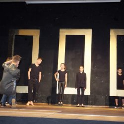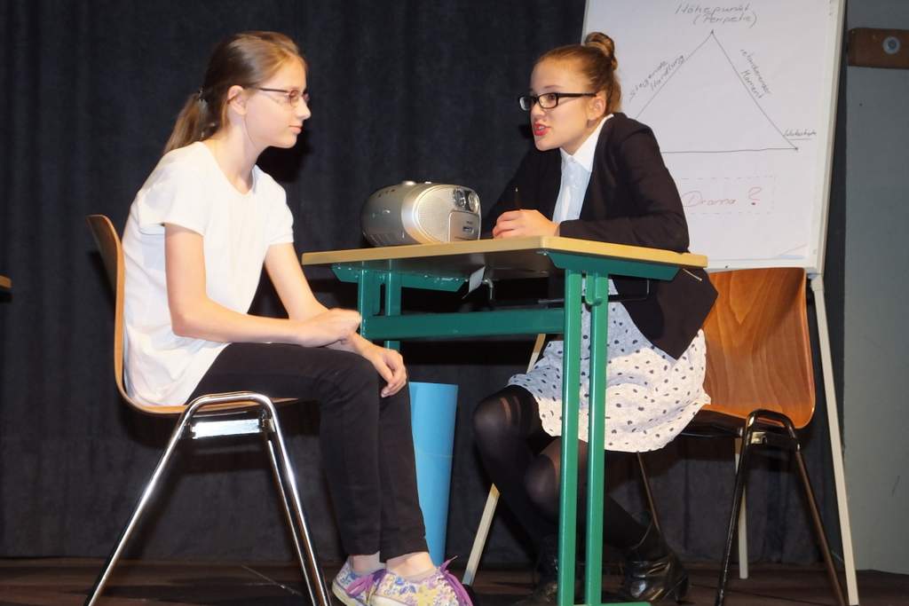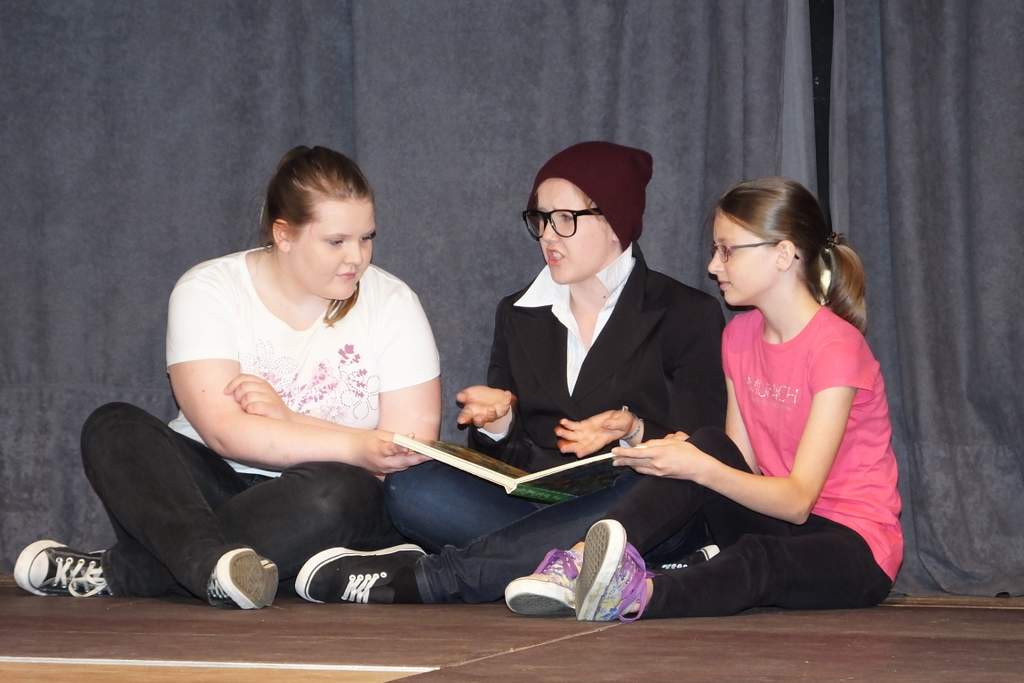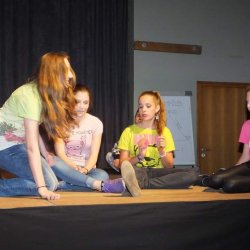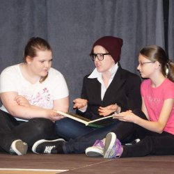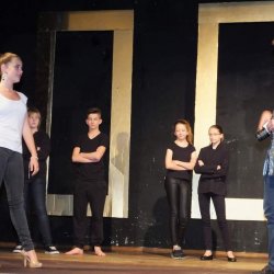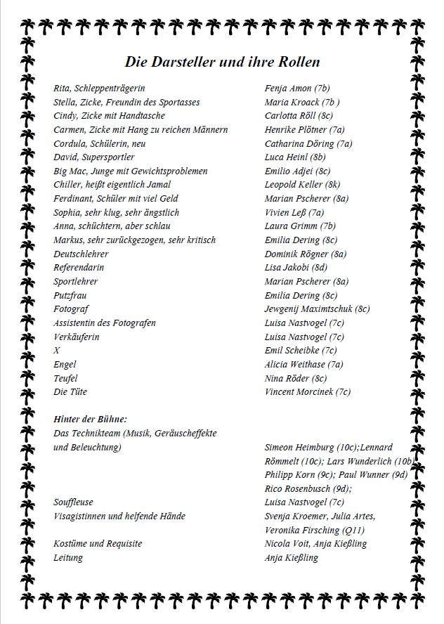 Wir sehen eine typische Gruppe – gibt es hier das „Typische“ überhaupt? – Jugendlicher, die ihren Lebensweg suchen, teilweise aufmüpfig, aber auch schüchtern, teilweise leistungsorientiert, manchmal pubertär mit dem anderen Geschlecht beschäftigt, oder „nur“ auf Sport konzentriert, ohne sich wirklich für die Mitschüler oder „das Leben“ zu interessieren. Da sind sie also, Maria Kroack überzeugend als die zickige Stella, die es ihrem sportlichen Freund, selbstverliebt, aber auch selbstmitleidig auf die Bühne gebracht von Luca Heinl, immer nur recht machen will. Da ist Zicke Nummer zwei namens Carmen, deren Hang zu reichen Männern wohl mit der Lektüre diverser Hochglanzblätter erklärt werden kann, die von Henrike Plötner erschreckend echt dargestellt wird – wie im richtigen Leben eben.