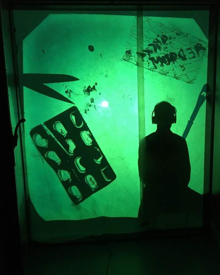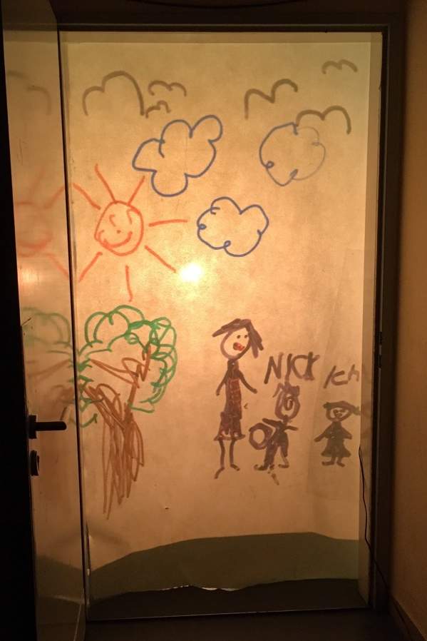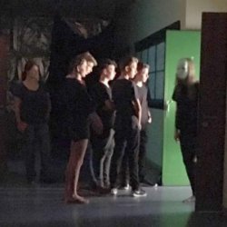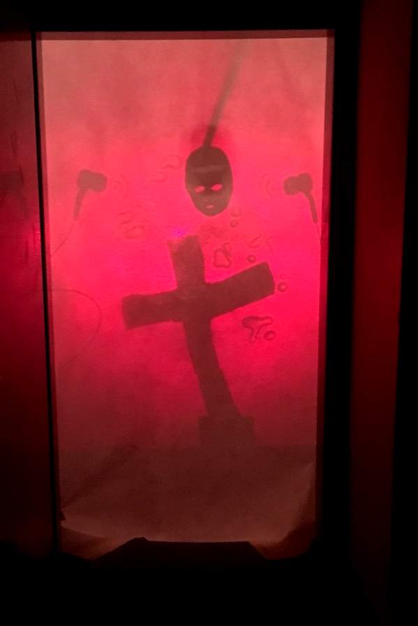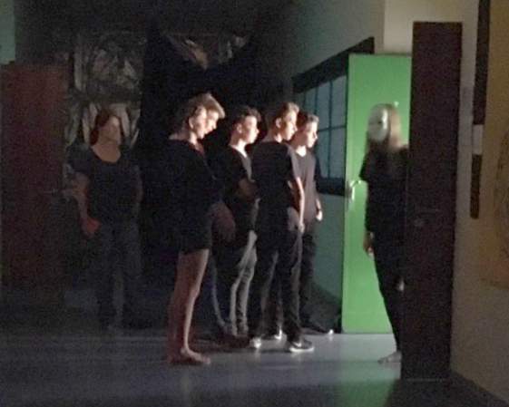 Hier nähert sich das P-Seminar „Spiel“Zeit 15/17 unter der bewährten Führung Tina Morcineks dem Zitat in der Überschrift an und dem verstörten, interessierten, beeindruckten und fragenden Zuschauer eröffnet sich eine Klang- und Bildlandschaft voller suchender Ichs, erschütternder Geständnisse und ungelöster Geheimnisse. Inspiriert unter anderem wiederum von den Elixieren, aber auch vom „Fräulein von Scuderi“ und „Des Vetters Eckfenster“ wird man eingebunden in einen bespielten Flur, in dem sich weiß-maskierte Gestalten stumm durch den Raum bewegen, den Zuschauer berühren oder tot am Boden liegen. Die dunkle Szenerie kann sich nur in den Türen öffnen, die aber keine Flucht ermöglichen, sind sie doch mit Transparentpapier verschlossen, hinter welchem sich Kreuze, Wunschzettel, Träume visualisiert offenbaren. Monoton den gleichend Text abspielend berichten verlorene Menschen, Getriebene, Gierige und die anderen bedauernde von einem Verbrechen und der dazugehörigen Verhandlung. Und man lernt „Jemand“ kennen, der gerne mehr hätte, der jetzt reich an Geld ist, der jetzt weniger hat, der eigentlich nichts gesehen hat, der etwas gesehen hat, der nicht hätte Gassi gehen sollen, der tot ist, der eine Verhandlung leitet. Und die Wahrheit? Man weiß es nicht.
